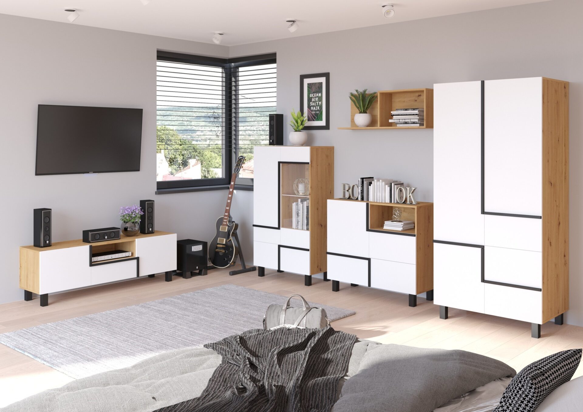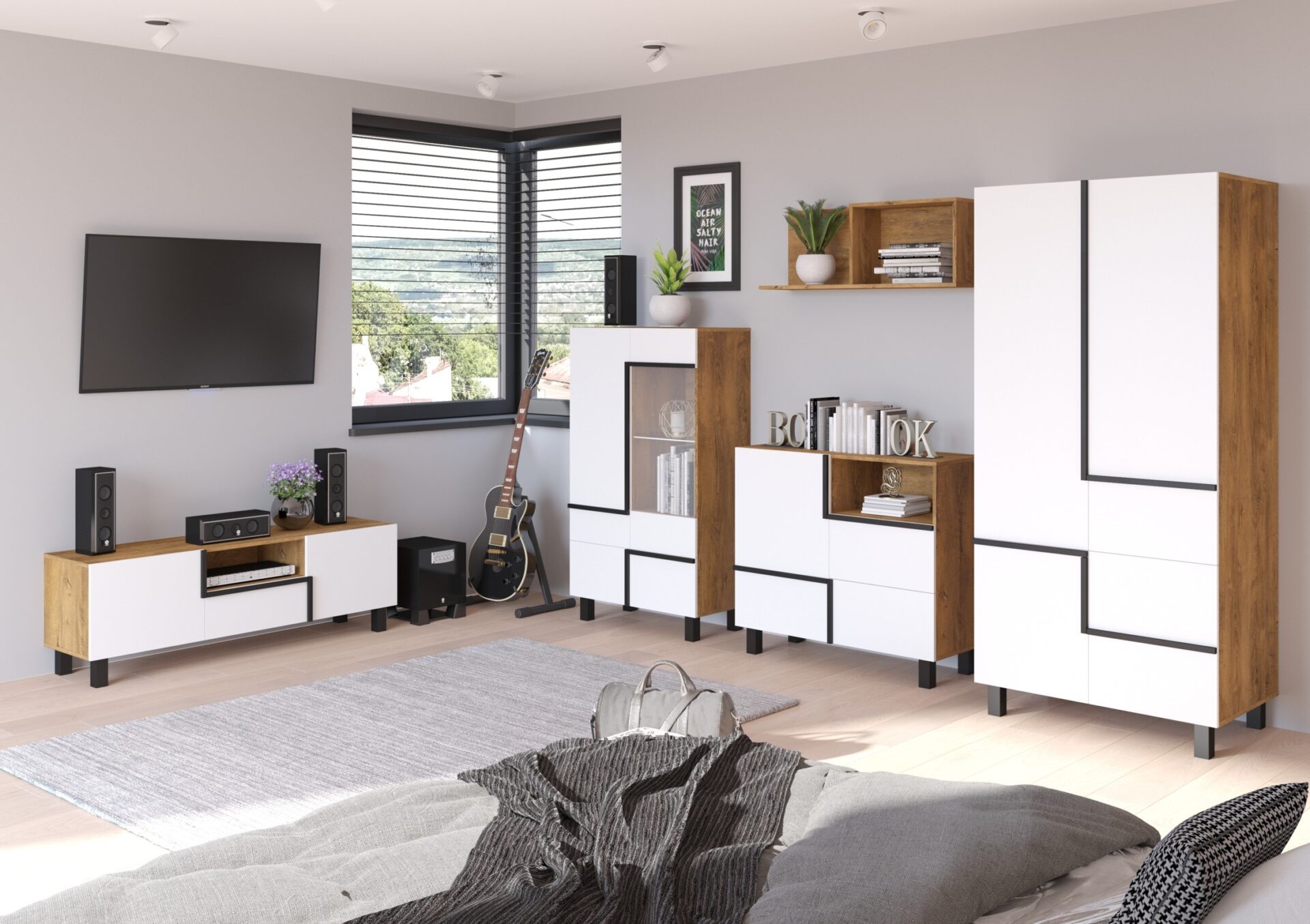 – дуб Сонома / белый / черный