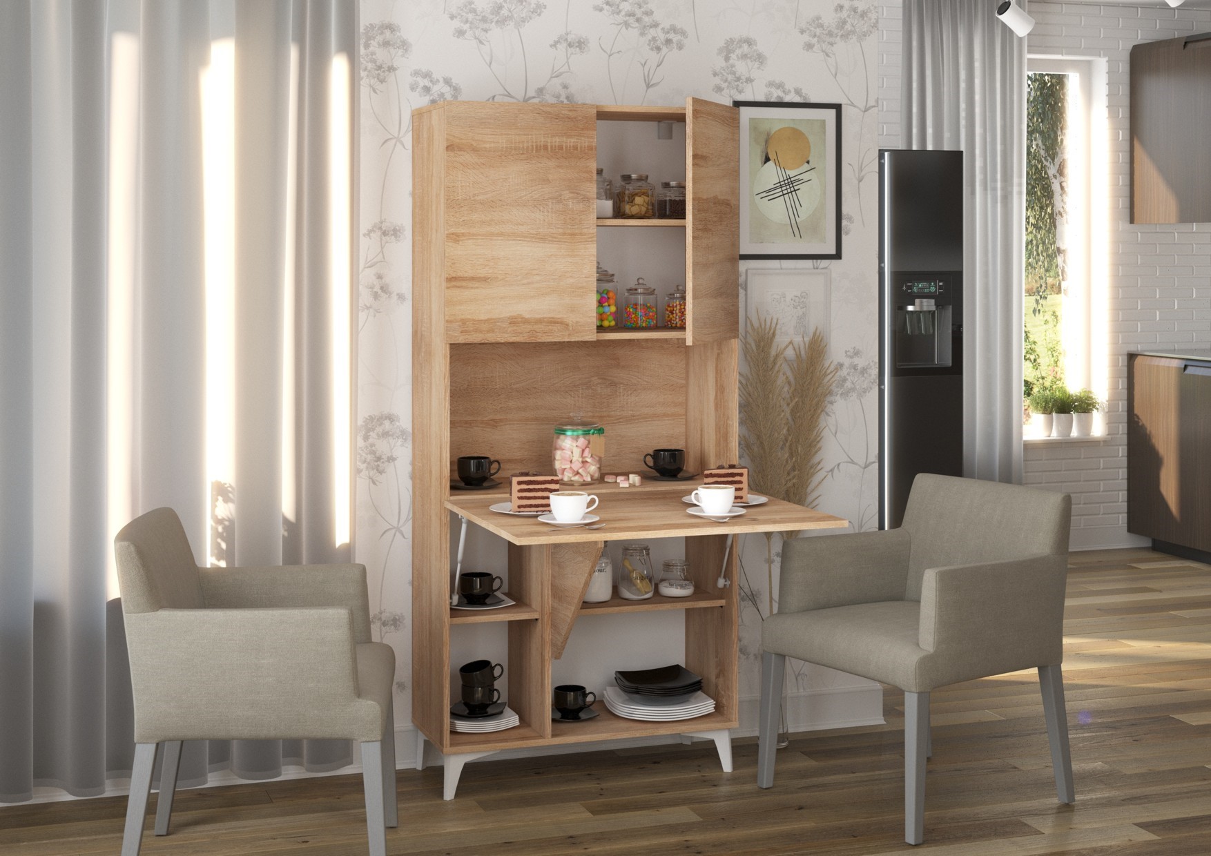 MEGI baldai 1 lentyna + stalas, Sonoma ąžuolas