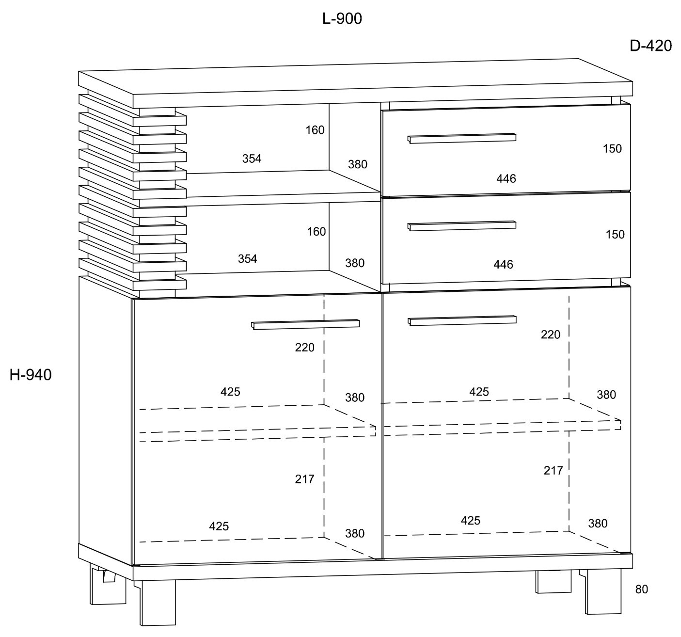 MILAR 03 baldų komoda, 2 stalčiai, 2 vnt