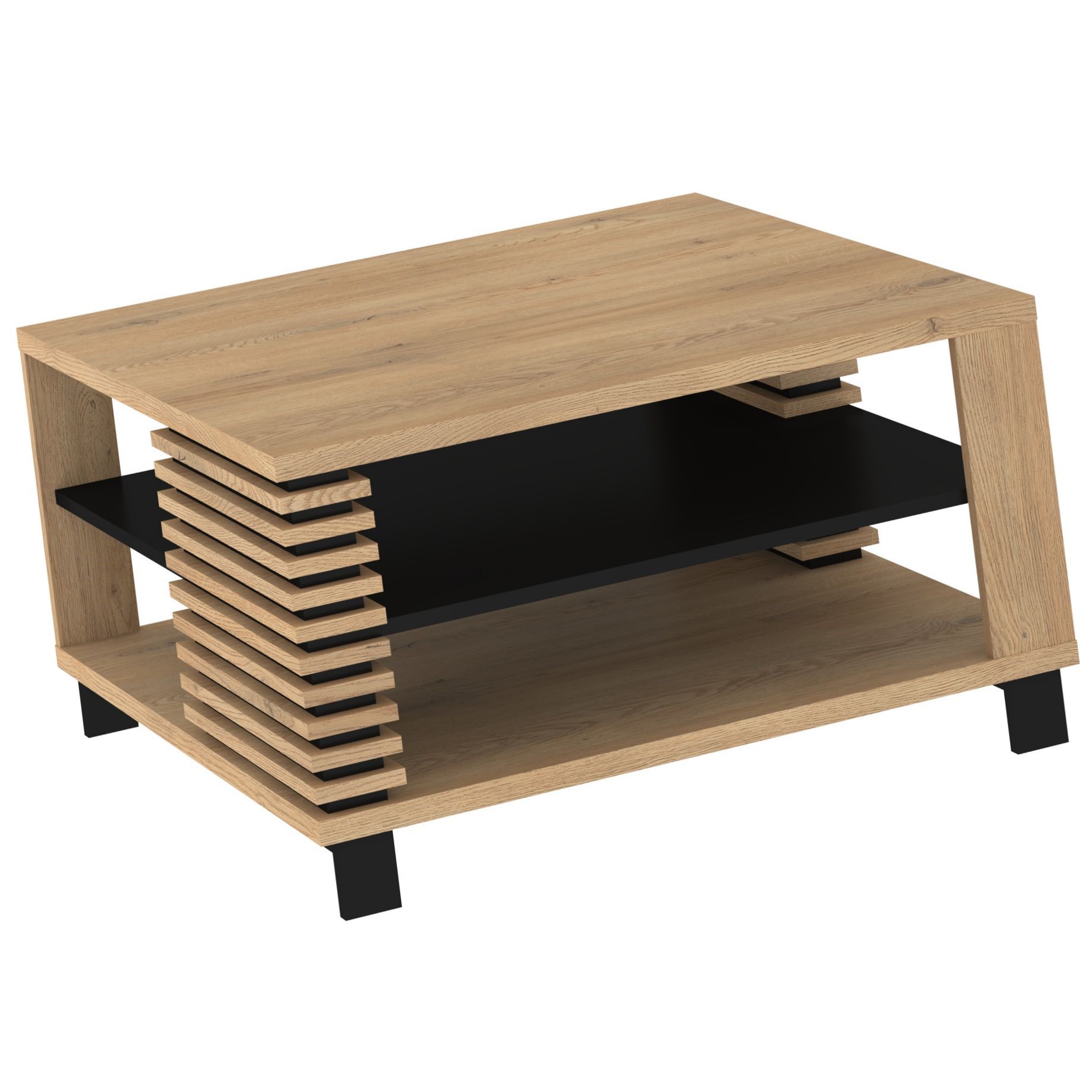 MILAR 05 baldai modernus kavos staliukas K kvadratinis kavos staliukas kremoninis ąžuolas juodas