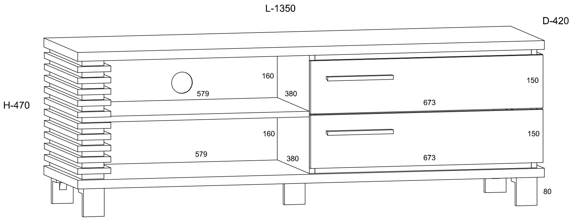 Подставка для телевизора MILAR 11 на 2 места Доступные цвета: дуб «Кремона» / миндаль «Гранада» / черный