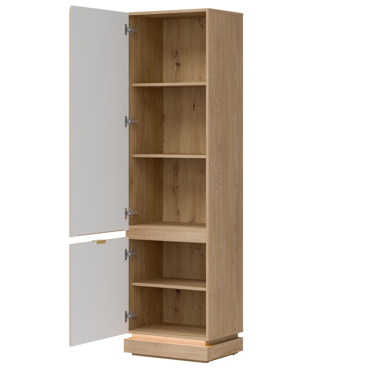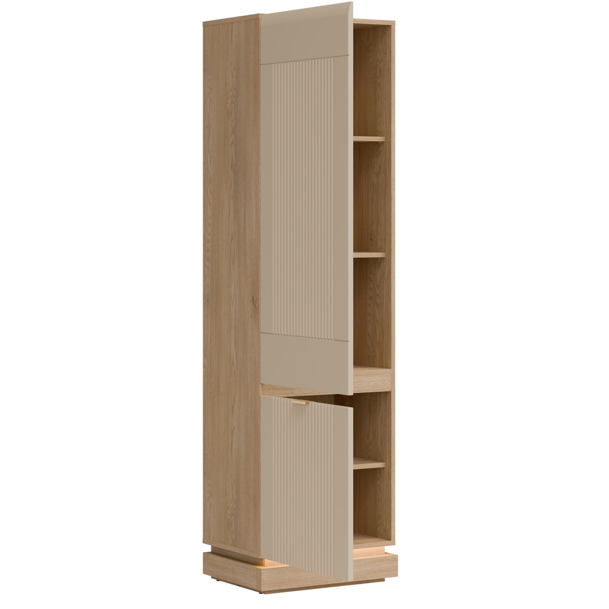 Шкаф MILTON ML07 — элегантное и функциональное дополнение к коллекции MILTON, идеально подходящее для современных интерьеров, где пространство и эстетика сочетаются воедино. Высокая, запираемая конструкция рассчитана на максимальную вместимость — внутренние полки идеально подходят для хранения книг, документов и повседневных аксессуаров, обеспечивая порядок и легкий доступ к содержимому. Матовые фасады из МДФ, доступные в нескольких сдержанных цветах, имеют тонкую обработку, подчеркивающую современный, но вневременной характер изделия. Стильные золотистые ручки добавляют элегантности. Корпус из дуба Cremona Torro привносит естественное тепло в пространство и гармонично дополняет цвета фасадов, создавая современную, но уютную композицию. Шкаф оснащен системой плавного закрывания, обеспечивающей исключительный комфорт. Это идеальный выбор для гостиной, офиса или прихожей — везде, где стиль, функциональность и высокое качество изготовления имеют первостепенное значение.