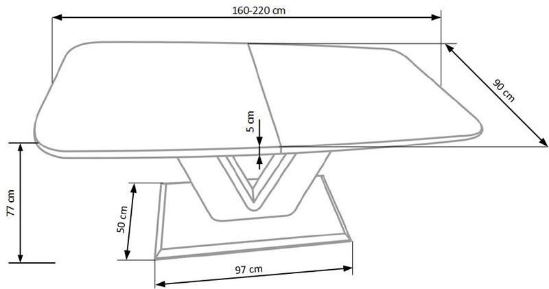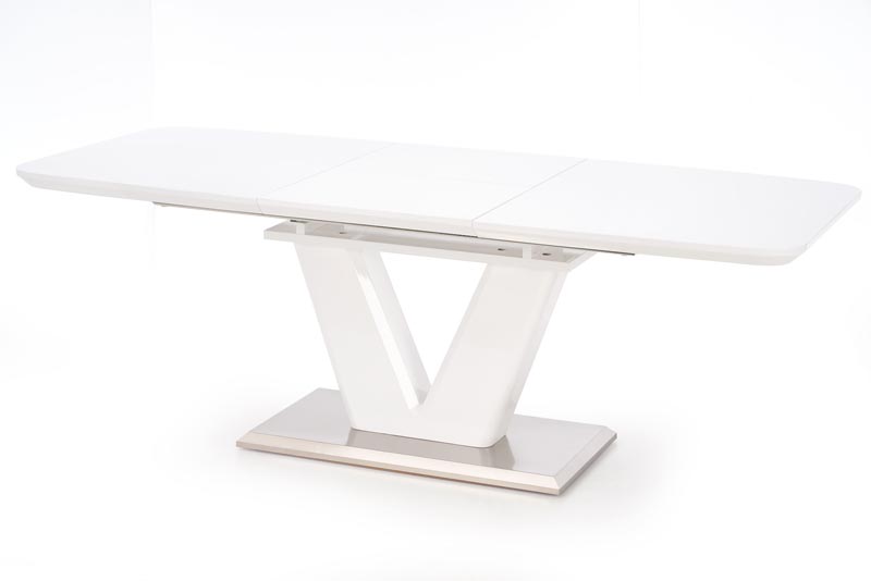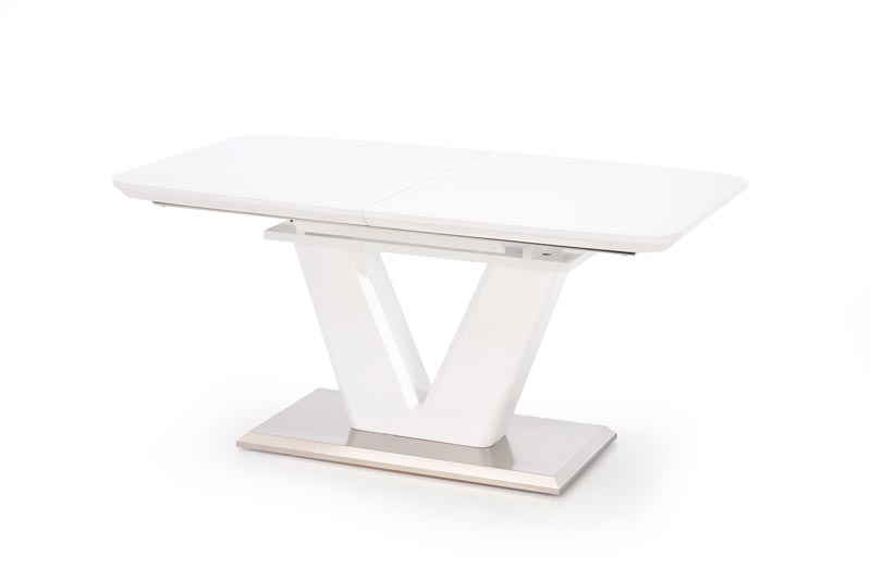 Раздвижной стол, размеры: 160-220/90/77 см, материал: лакированный МДФ / нержавеющая сталь, цвет: белый