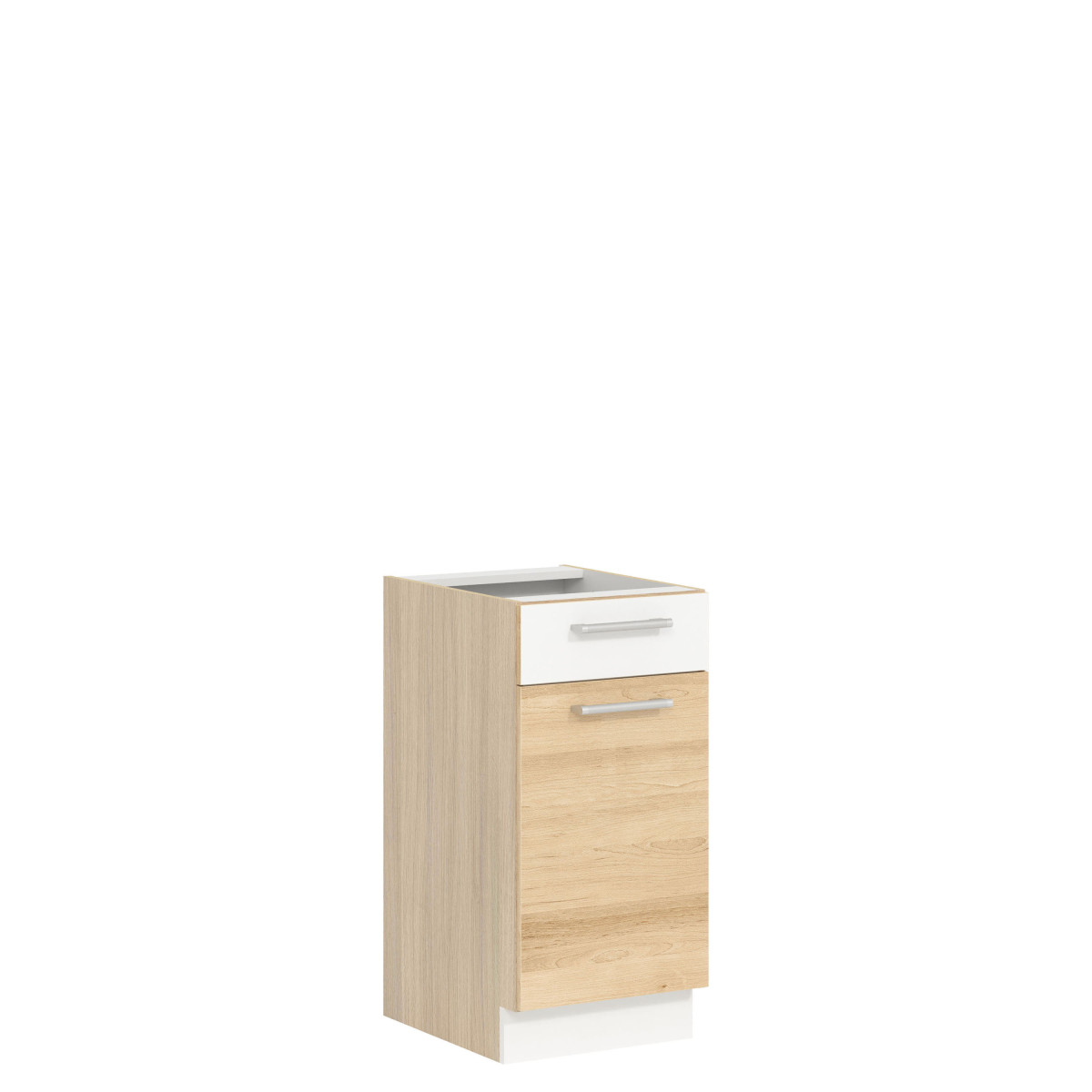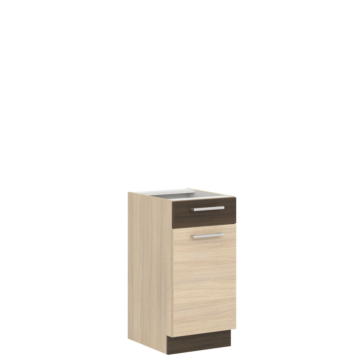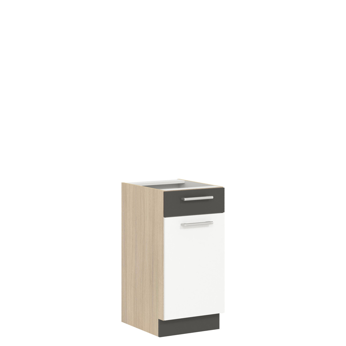 Базовый шкаф MD13/D40S1 из коллекции кухонной мебели Modena. Этот односекционный шкаф с выдвижным ящиком, открывающимся влево или вправо, и двумя нишами идеально вместит мелкую посуду и кухонные принадлежности, которые удобно держать под рукой. Размеры 40 см в ширину и 82 см в высоту делают его идеальным дополнением к нижнему кухонному блоку. Шкаф приобретается в двух отдельных частях (передняя панель и корпус). Передняя панель доступна в светлом цвете «риека», темном цвете «риека», цвете «бук/глянцевый белый» и глянцевом белом/матовом графите, а корпус – в светлом цвете «риека». Доступные цвета передней панели позволяют адаптировать дизайн под ваши индивидуальные потребности. Вся коллекция состоит из отдельных элементов, которые вы можете выбрать и собрать самостоятельно, или выбрать из нескольких готовых комплектов. Дополнительные преимущества коллекции включают регулируемые ножки на базовых модулях, трехмерно регулируемые подвесные кронштейны на верхних модулях и высококачественную фурнитуру. Этот шкаф, как и вся мебельная коллекция Modena, был тщательно спроектирован, чтобы гарантировать большое пространство для хранения и долгий срок службы.