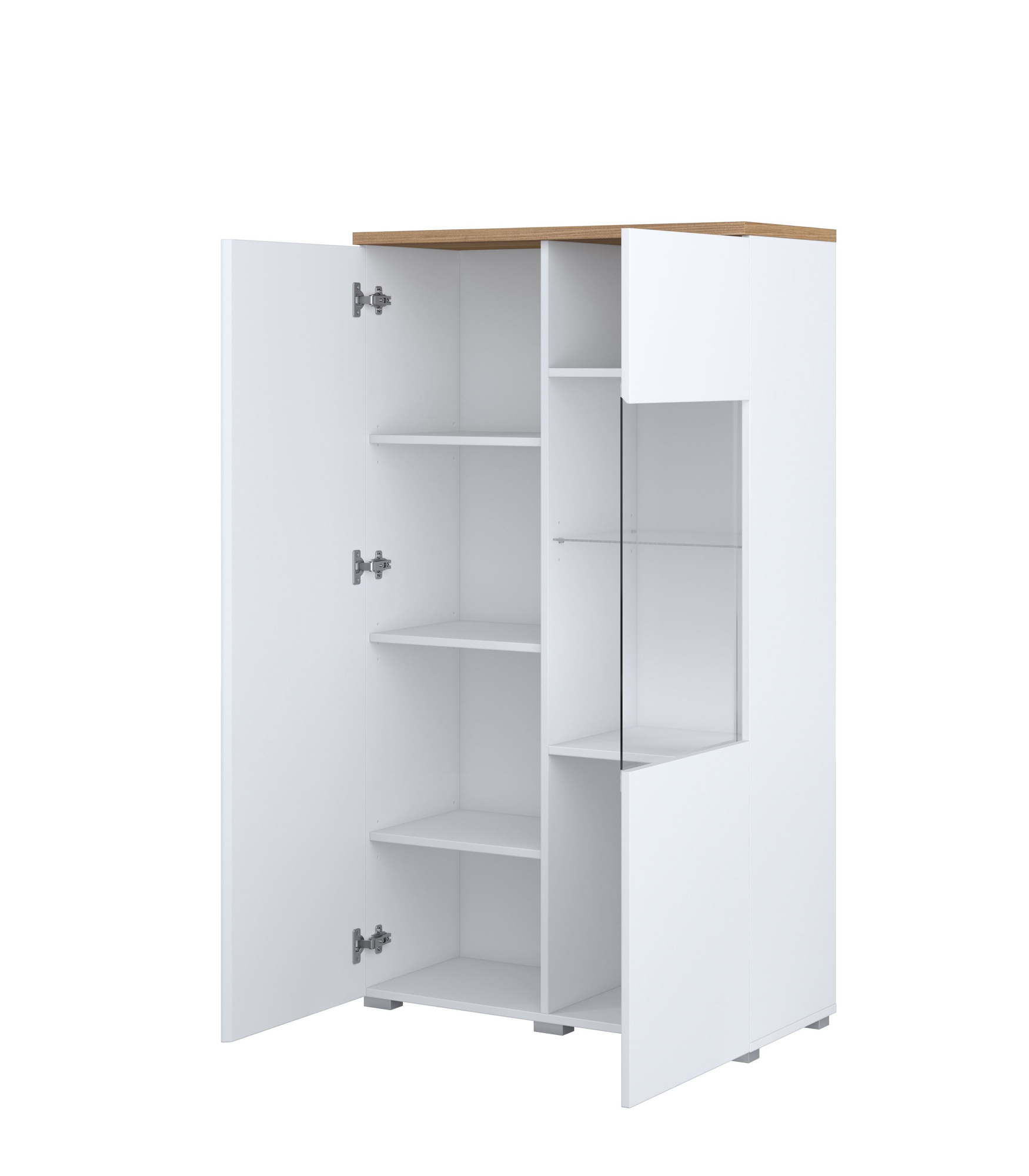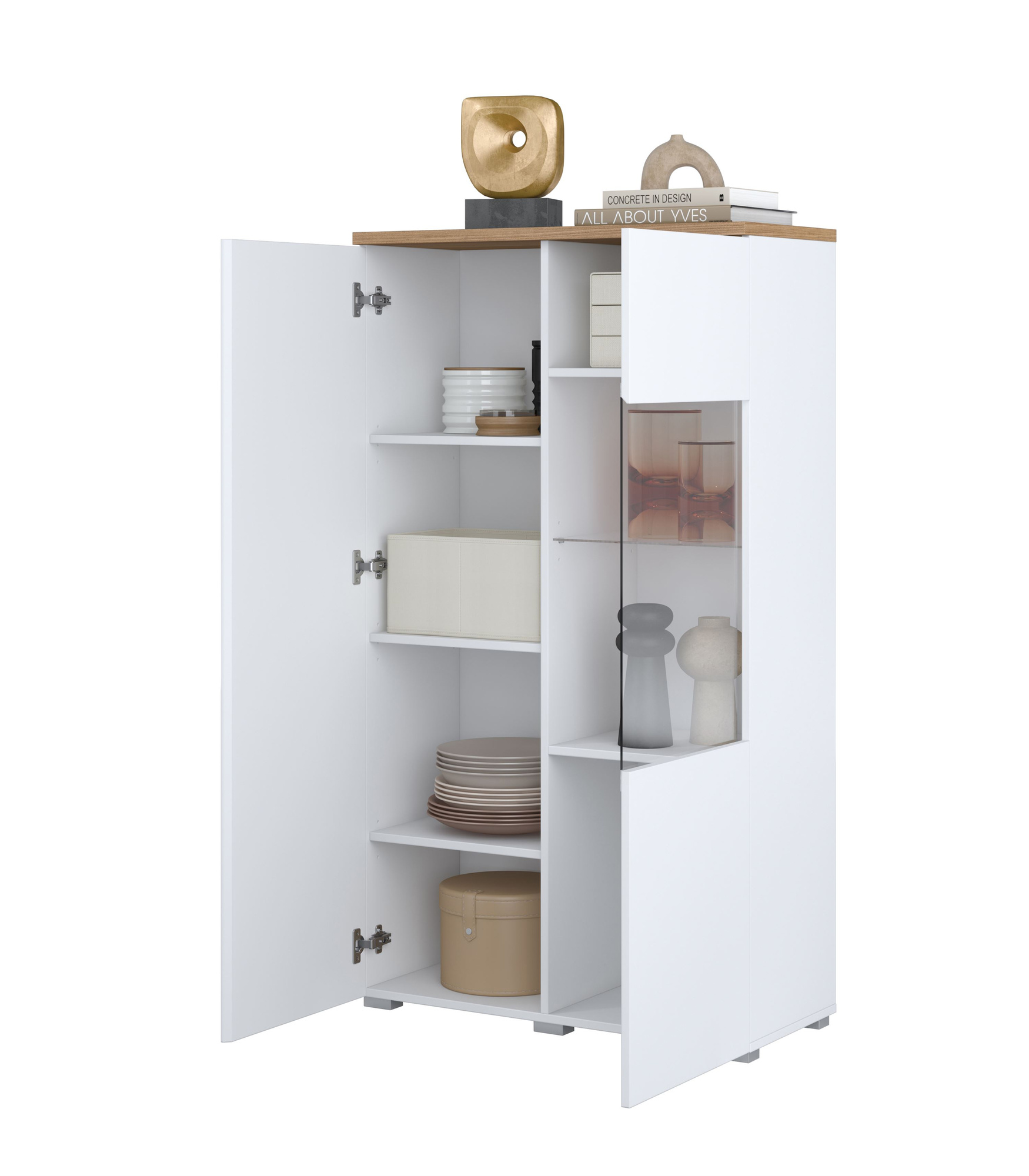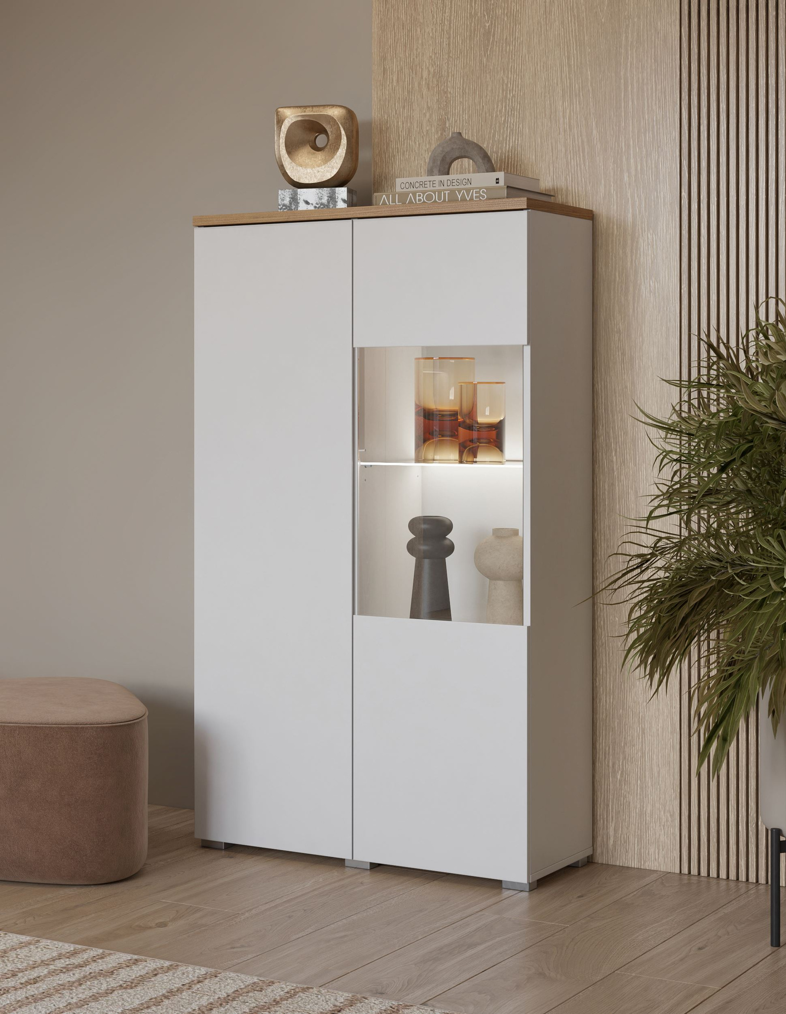 Modo – 2D vitrina, balta matinė, ąžuolo spalvos, „Mauvella“