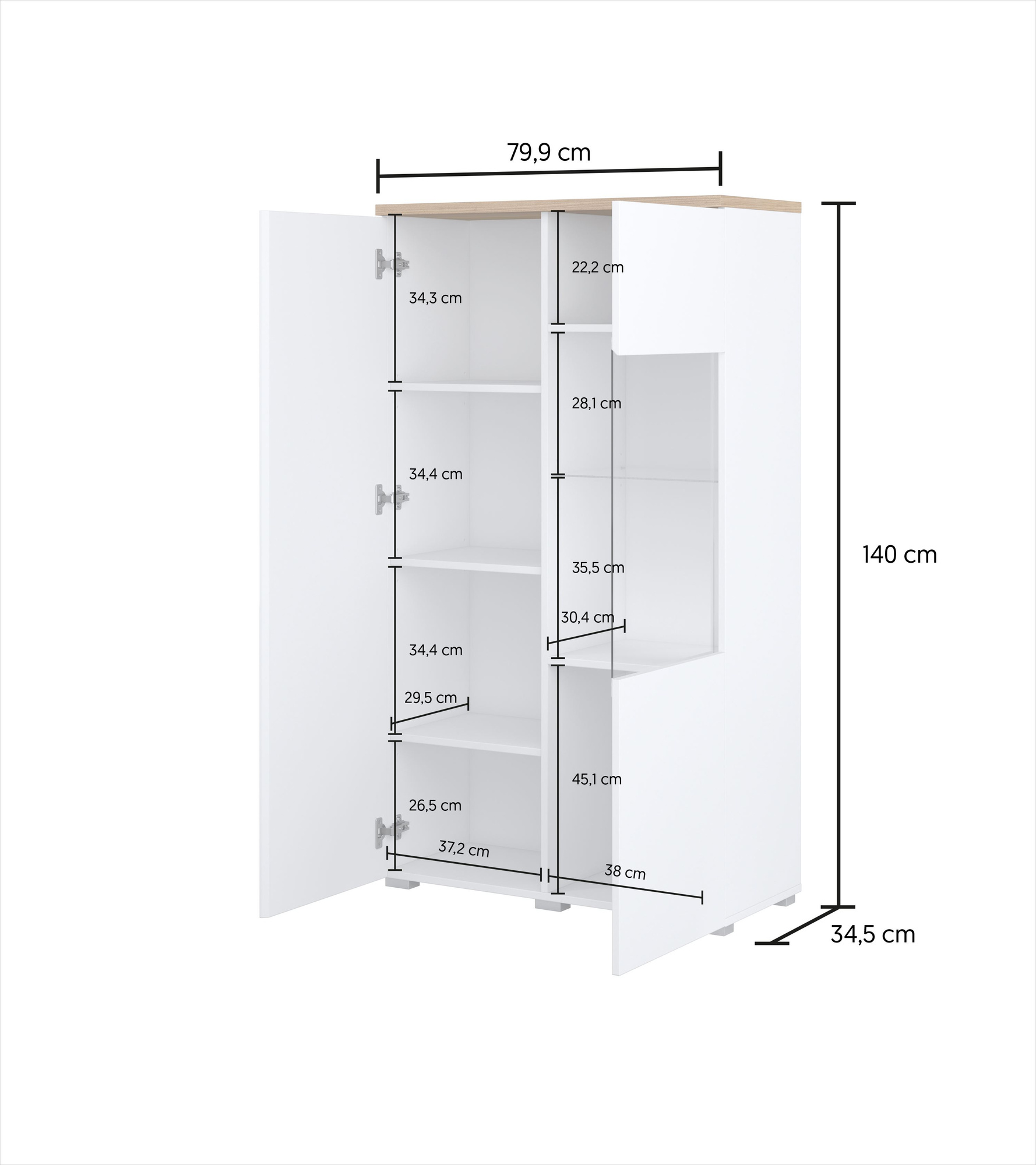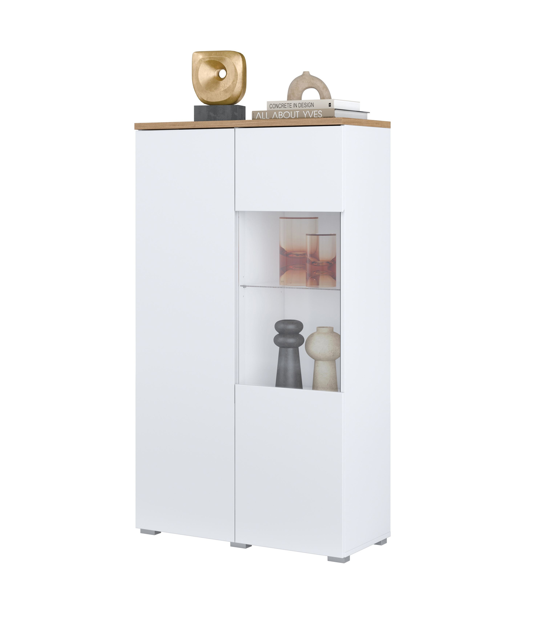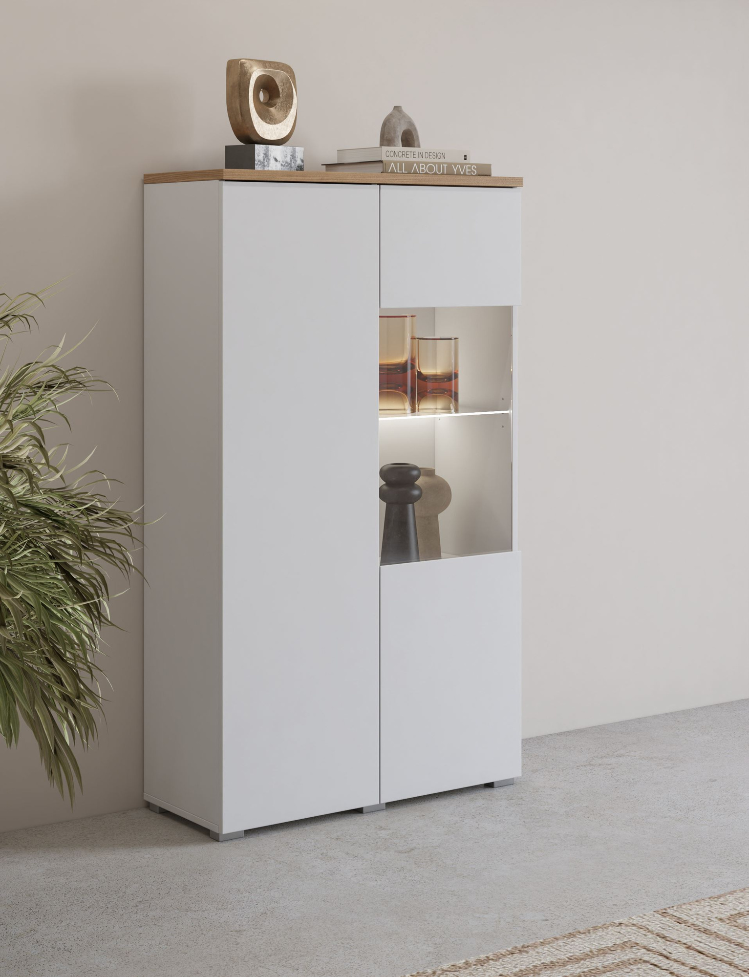 Modo – 2D vitrina, balta matinė, ąžuolo spalvos, „Mauvella“