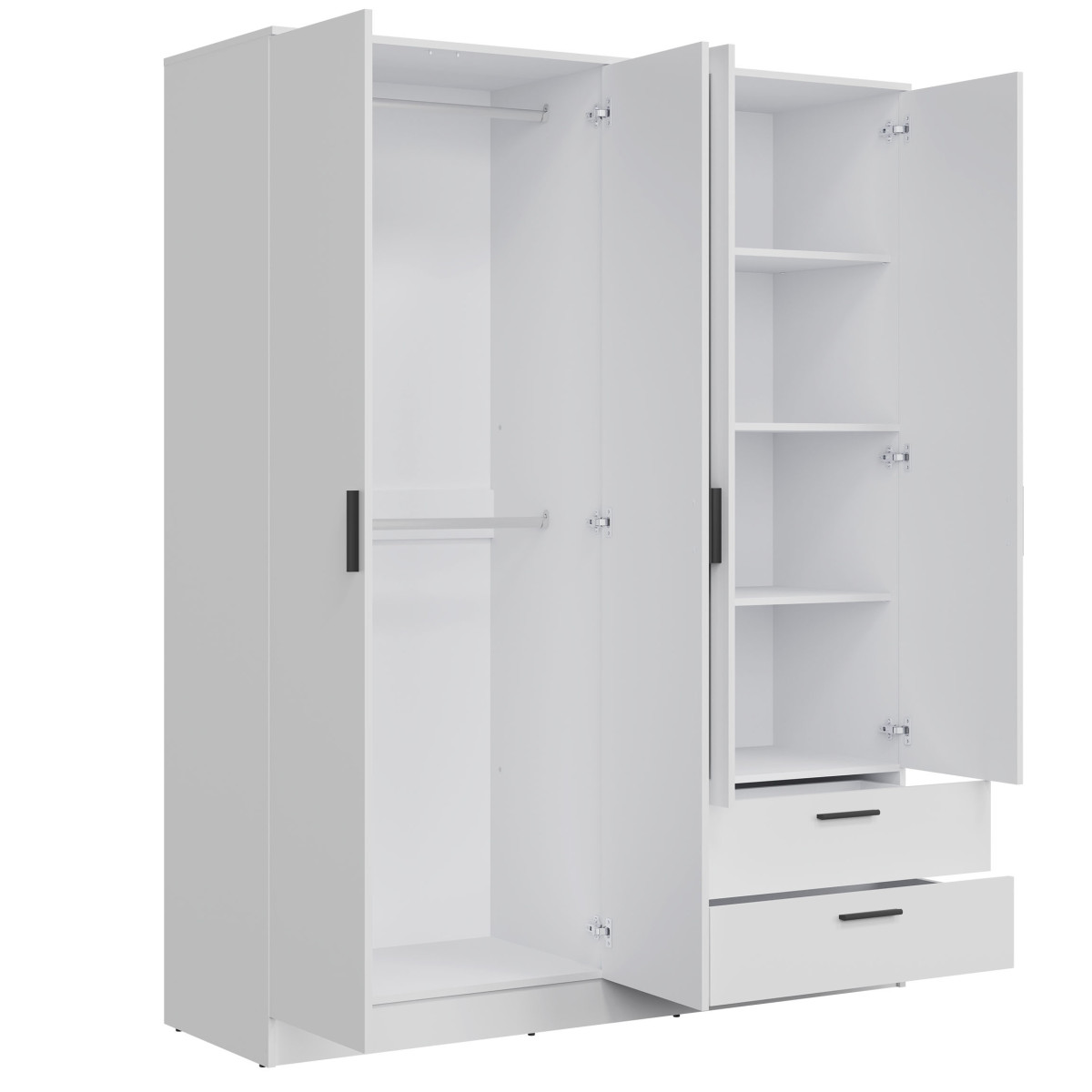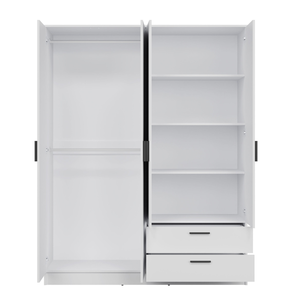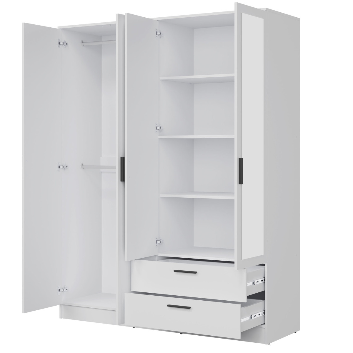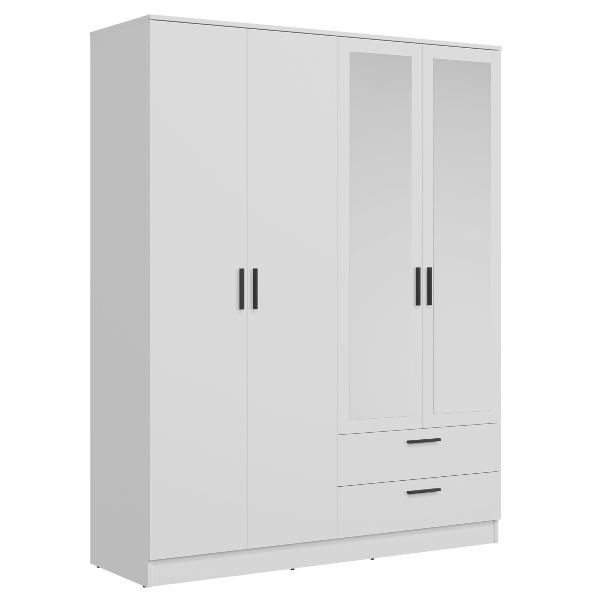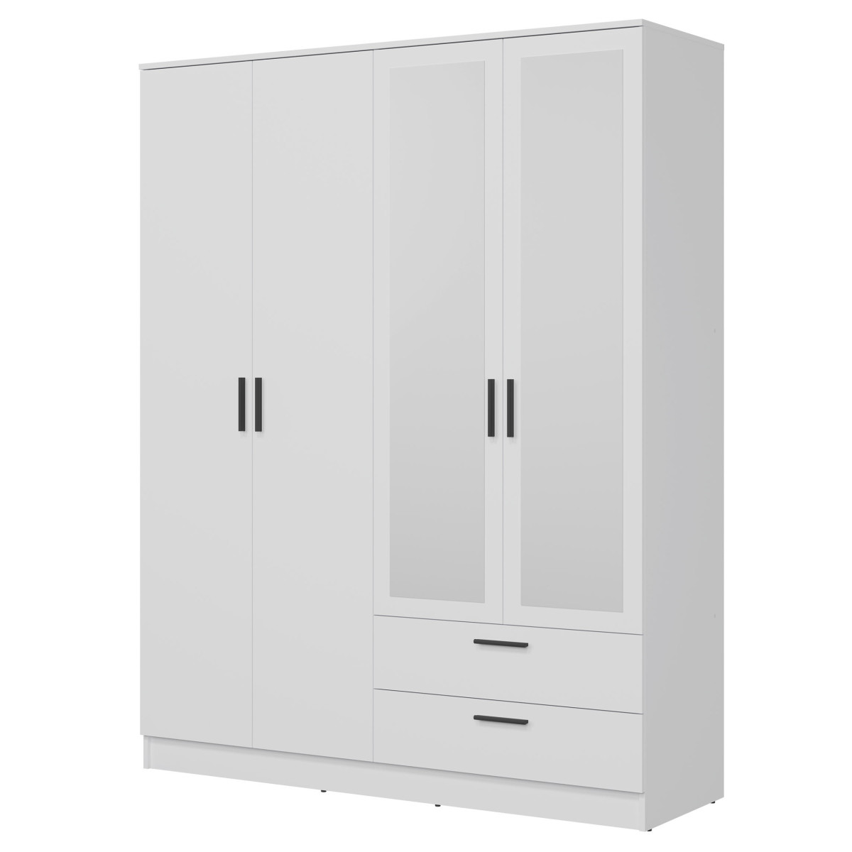 Ширина 160 см, глубина 52 см, высота 204,7 см, вес изделия с упаковкой 123,10 кг. Код/символ производителя MT04. Название коллекции MONTANA. Название в системе b2b: MONTANA MT04 ШКАФ БЕЛЫЙ/БЕЛЫЙ КОМПЛЕКТ. Количество упаковок: 3. Стиль: Модерн. Комплектация: Инструкция по сборке / аксессуары для сборки. Сборка: Самостоятельная сборка. Цвет корпуса: Белый. Материал отделки корпуса: 16 мм. Материал/тип/толщина: 16 мм. Верхняя часть корпуса: 16 мм. Материал/тип/толщина: 16 мм. Цвет полок: Белый. Материал/тип/толщина: 16 мм. Количество полок: 2. Тип верхней части: 1. Материал/тип/толщина: 2,5 мм HDF. Цвет видимой части задней стенки: Белый. Цвет передней панели: Белый. Материал/тип/толщина: 16 мм. Передняя панель с зеркалом: ДА. Количество зеркал: 2. Передняя петля: ⌀ 35 мм, регулируемая в трех положениях. Ручка спереди / отделка / цвет Пластик / черный Направляющие для выдвижных ящиков полного выдвижения Ножка / отделка / цвет Без регулировки / Мебельные направляющие / пластик / черный Количество дверей 4 Количество ящиков 2 Количество закрытых ниш В стандартной комплектации 5 / выдвижение до 9 Комплектация В стандартной комплектации 2 вешалки