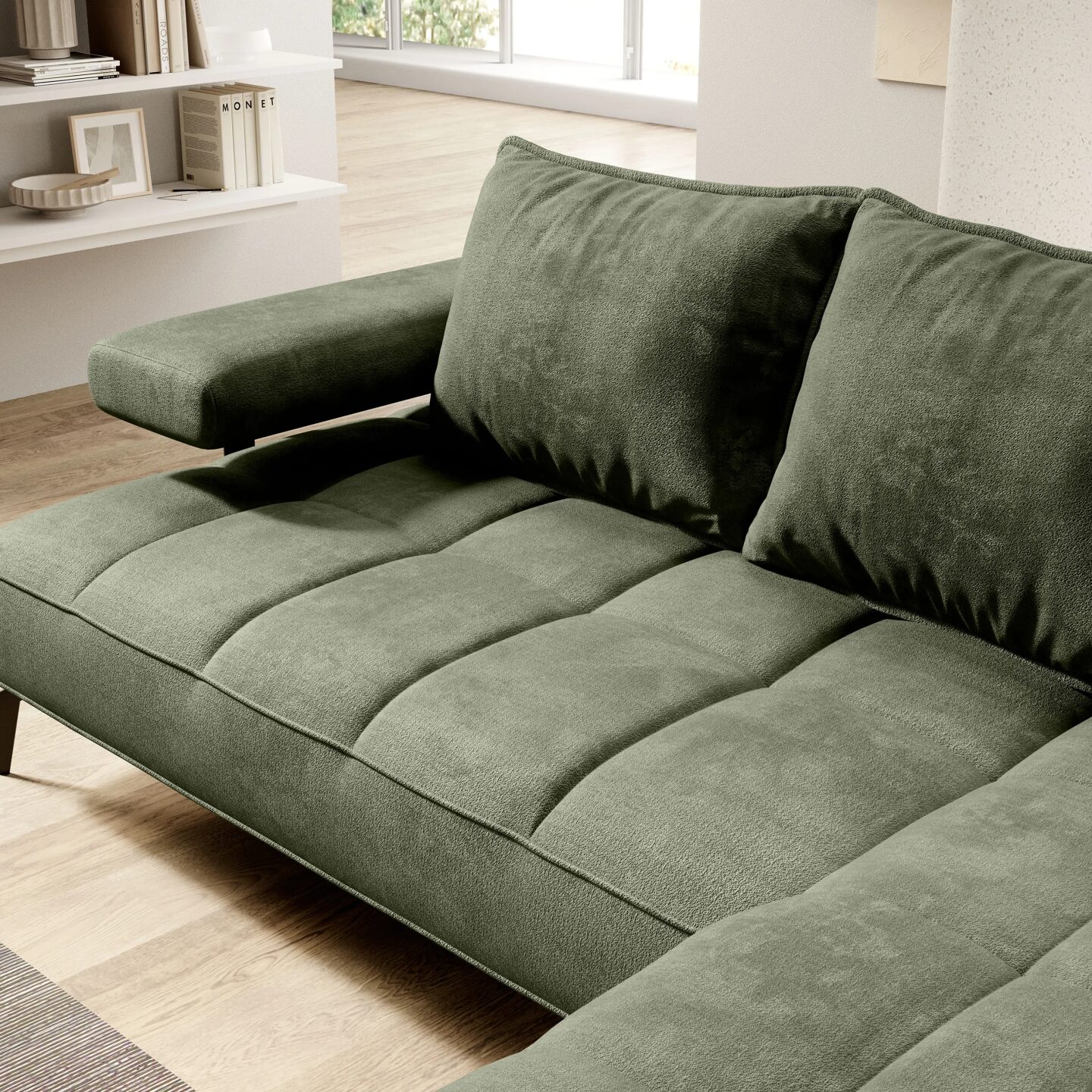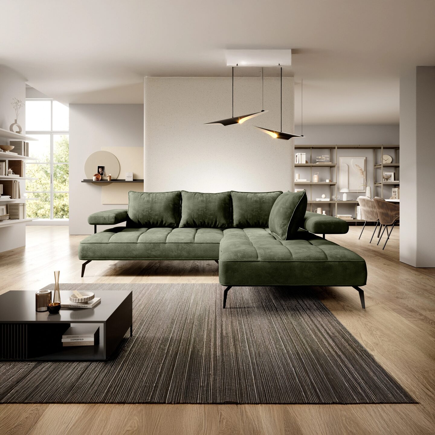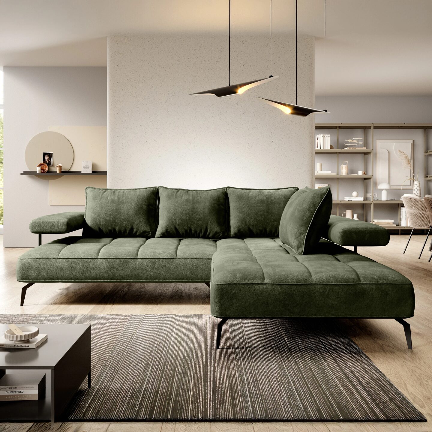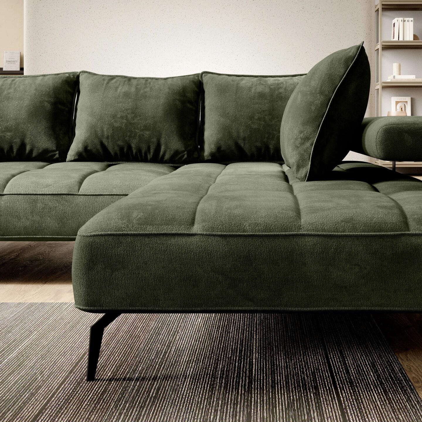 Угловой диван Montella L сочетает в себе современный дизайн, функциональность и максимальный комфорт. Оснащенный сиденьем с электроприводом (82 x 109 см), функцией спального места (109 x 198 см) и подушками спинки на молнии, он обеспечивает комфорт и адаптацию к индивидуальным потребностям пользователя. Высокие металлические ножки (17 см) придают дивану легкий, современный вид, а конструкция из массива дерева и стали гарантирует долговечность.