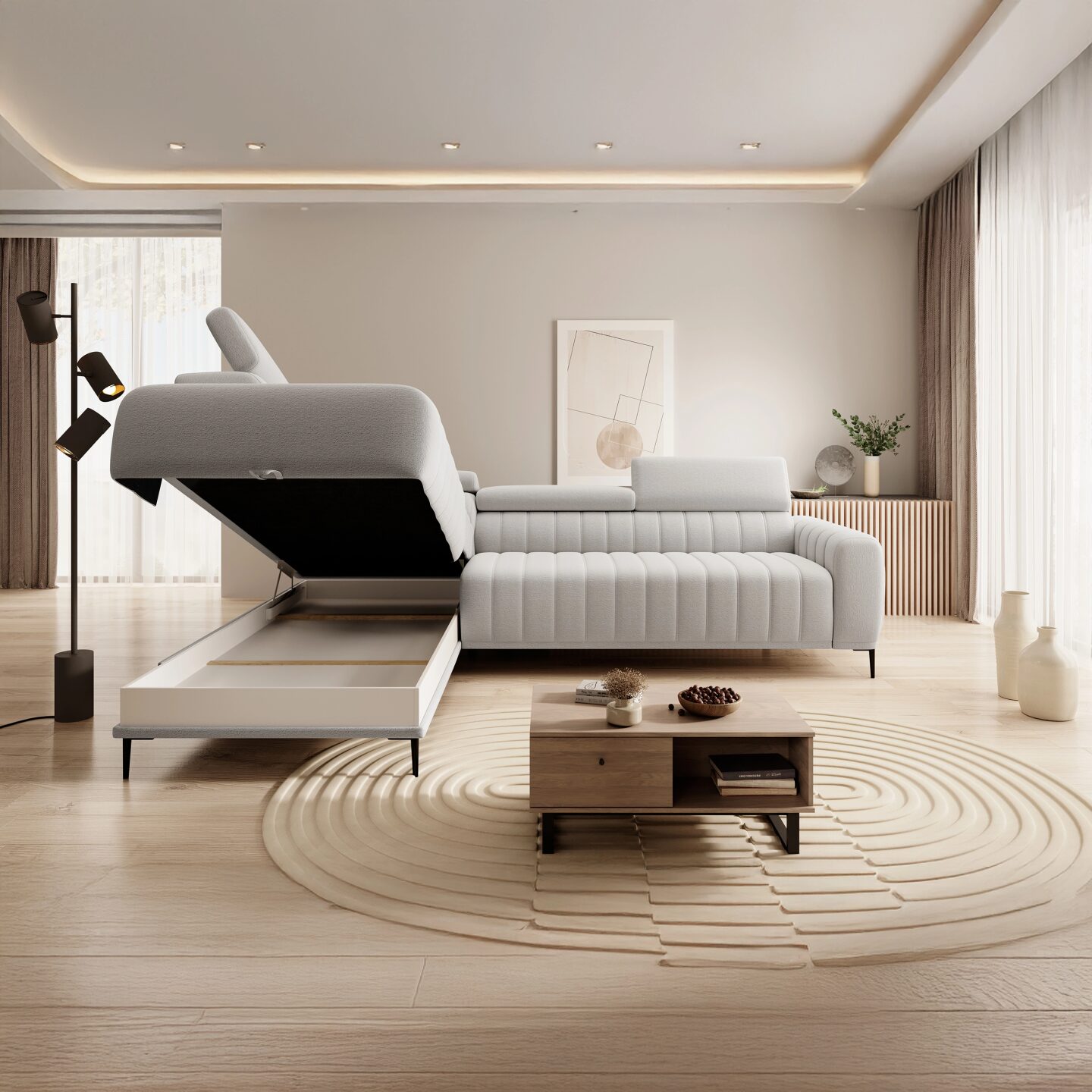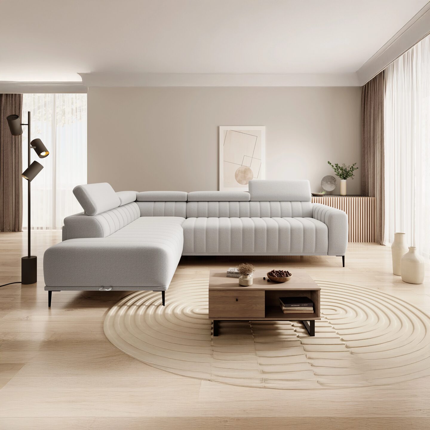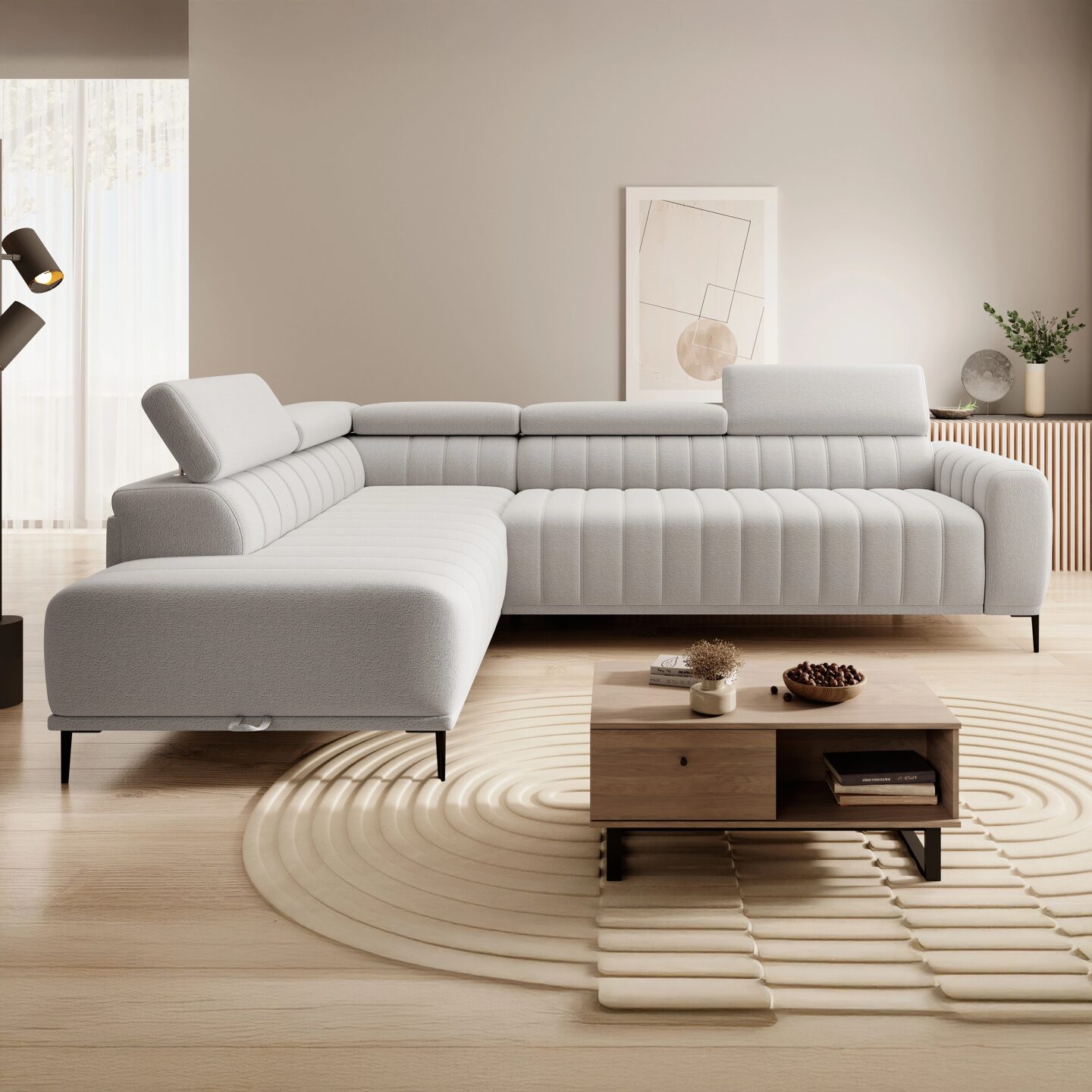 Угловой диван Gandi L120 — это современная модель, сочетающая в себе элегантность, функциональность и высокий уровень комфорта. Оснащенный итальянской системой спального места, вместительным отсеком для хранения постельного белья и регулируемыми подголовниками, он идеально подходит как для повседневного отдыха, так и для приема гостей. Прочные металлические ножки, пружины и высокоэластичный пенополиуретан гарантируют комфорт и долговечность на долгие годы. Благодаря полностью обитой спинке, угловой диван также хорошо подходит в качестве отдельно стоящего элемента.