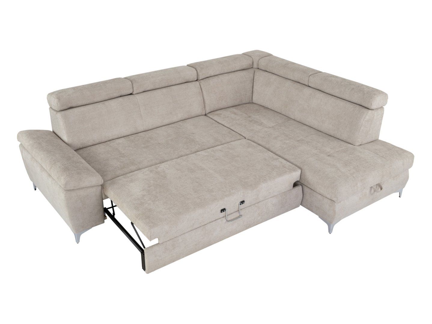 Угловой диван Raul – мебель, которая адаптируется к вашему повседневному ритму. Комфорт и функциональность. Элегантная форма, практичные функции и комфортная отделка – угловой диван Raul с функцией спального места и местом для хранения вещей станет идеальным выбором для повседневного отдыха и ночного сна. Сиденье наполнено высокоэластичной пеной HR, пенополиуретаном и пружинами S-образной формы, обеспечивая превосходную поддержку, мягкость и долговечность. Контурная спинка и регулируемые подголовники позволяют настроить положение в соответствии с вашим ростом и стилем сидения, гарантируя полный комфорт для каждого пользователя. Практичные функции. Правый угловой диван Raul оснащен функцией спального места «дельфин», которая быстро превращает его в удобную кровать размером 132×200 см. Это идеальный вариант для гостей или для повседневного отдыха. Встроенное отделение для хранения постельного белья позволяет хранить одеяла и подушки, экономя место в шкафах. Спинка дивана эстетично отделана тканью, что позволяет разместить его в центре вашей гостиной. Дизайн и стиль. Угловой диван Raul выделяется своей простой, современной формой и элегантными деталями. Изящные металлические ножки придают легкость и визуальную свежесть, а бежевая ткань Eden 06 вносит гармонию и вневременной стиль в интерьер. Этот предмет мебели впишется как в модернистские, так и в более классические интерьеры, создавая гармоничное и комфортное пространство. Особенности мебели: Функция спального места: дельфинообразной формы – быстрое и удобное раскладывание. Спальная зона: 132×200 см – идеально подходит для гостей. Контейнер для спальных мест: практичное решение для хранения. Сиденье: пенополиуретан + пенополиуретан + зигзагообразные пружины – комфорт и эластичность. Спинка: обивочные ремни + пенополиуретан – адекватная поддержка. Подголовники: регулируемые – адаптируются к индивидуальным предпочтениям. Спинка углового дивана: обтянута тканью – свобода в расстановке мебели. Ножки: металлические, высокие – современный акцент и легкость формы. Размеры: 271×89/98×206 см (ширина x высота x глубина). Ткань: Eden 06 – бежевый, прочный обивочный материал. Расположение: правостороннее. Резюме: Угловой диван Raul – это современный предмет мебели для гостиной, сочетающий высокую эстетику и функциональность. Благодаря регулируемым подголовникам, функции спального места и практичному отсеку для хранения он идеально отвечает вашим повседневным потребностям. Благодаря стильной отделке и продуманному дизайну он станет элегантным дополнением к любому интерьеру и легко впишется в ваш повседневный распорядок.
