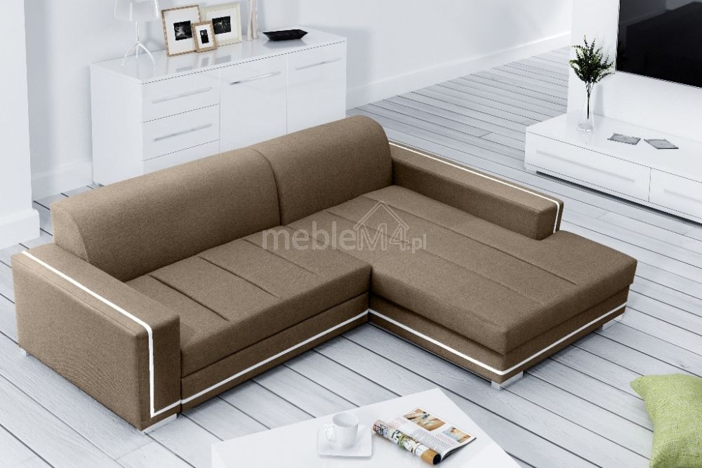 Угловой диван-трансформер оснащен отсеком для хранения спального места.