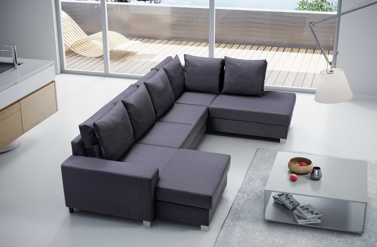 Угловой диван раскладывается и имеет отделение для хранения спального места.
