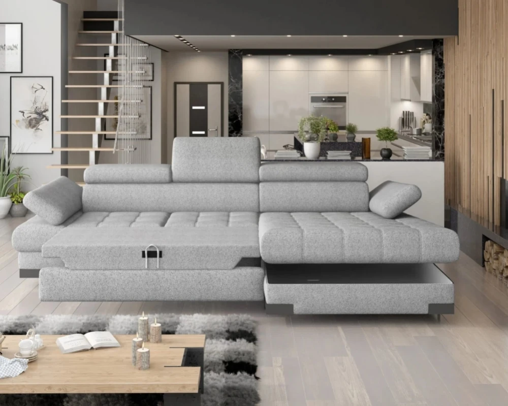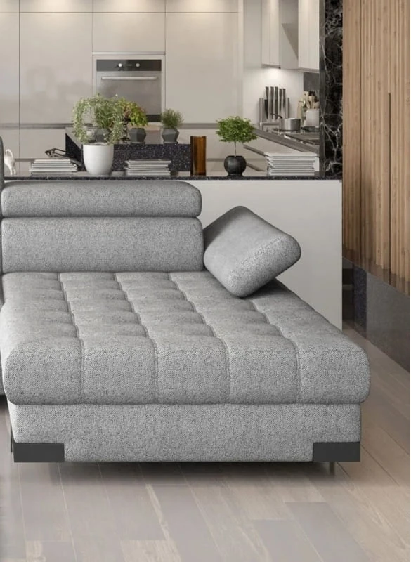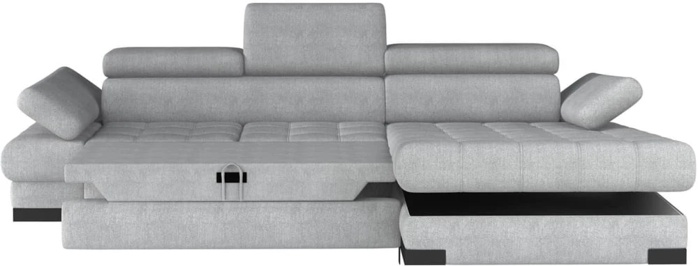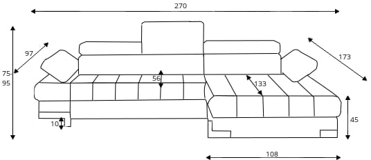 Угловой диван Selva Mini — это современная модель с красивыми линиями и декоративной строчкой на сиденье, подвижными подлокотниками и 3 регулируемыми подголовниками. Эта модель имеет спальное место в форме дельфина с площадью 122×216 см и спальным отсеком размером 164x95x16 см. Наполнитель сиденья — пружины типа А, пенополиуретан N30 и эластичный ремень. Наполнитель спинки — пенополиуретан T1818, T21 и эластичный ремень. Обивка спинки. Черные металлические ножки высотой 10 см. Угловой диван доступен в левостороннем и правостороннем вариантах. Selva также доступен в размерах L и XL.
