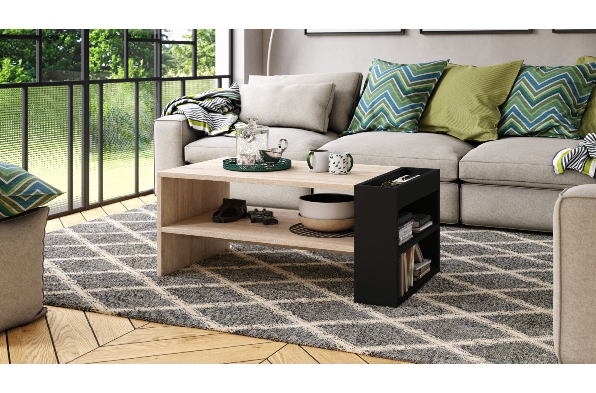 NEFRI Sonoma ąžuolo/matinės juodos spalvos – MODERNUS KAVOS STALIUKAS SU LENTYNA
