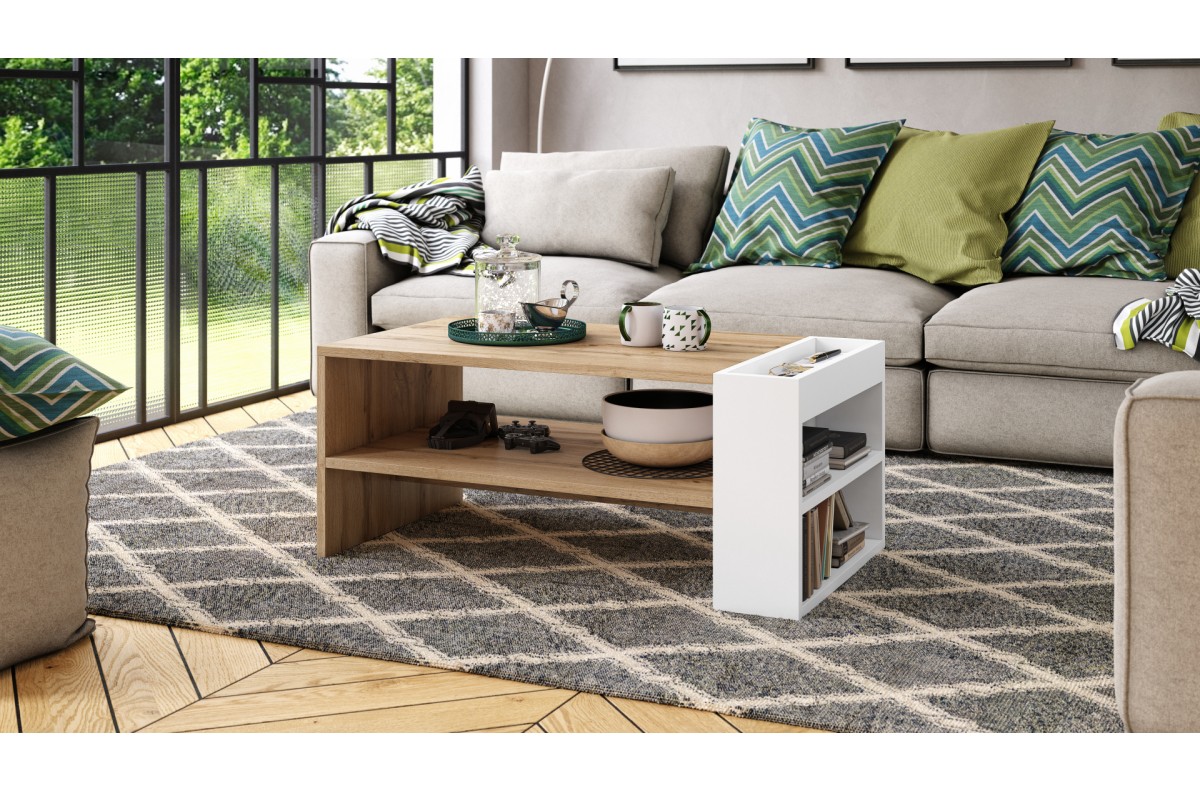 NEFRI Wotan ąžuolas/matinė balta – MODERNUS KAVOS STALIUKAS SU LENTYNA