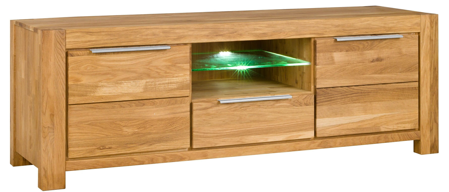 Эта современная тумба под телевизор с двумя дверцами и двумя открытыми полками изготовлена из массива дуба. Передняя панель, ящики, дверцы и ножки выполнены из шпона массива дуба. Полки, перегородки и боковые стороны также изготовлены из дубового шпона. Промасленная отделка придает ей вид натурального дерева.