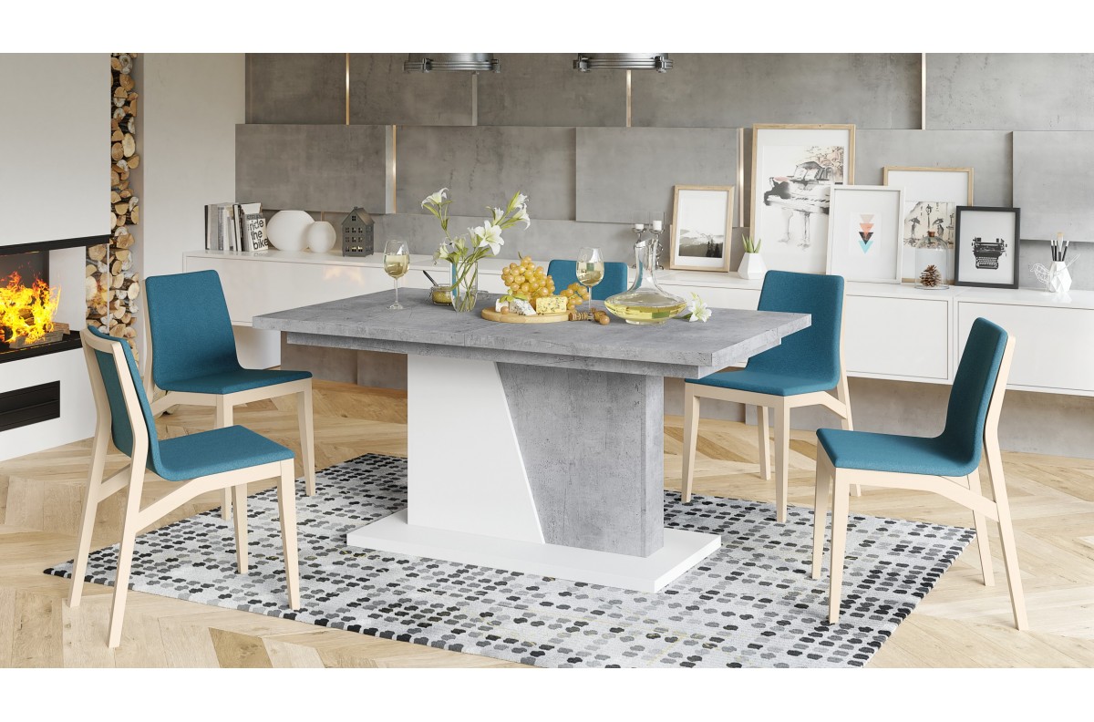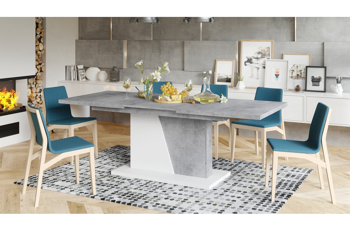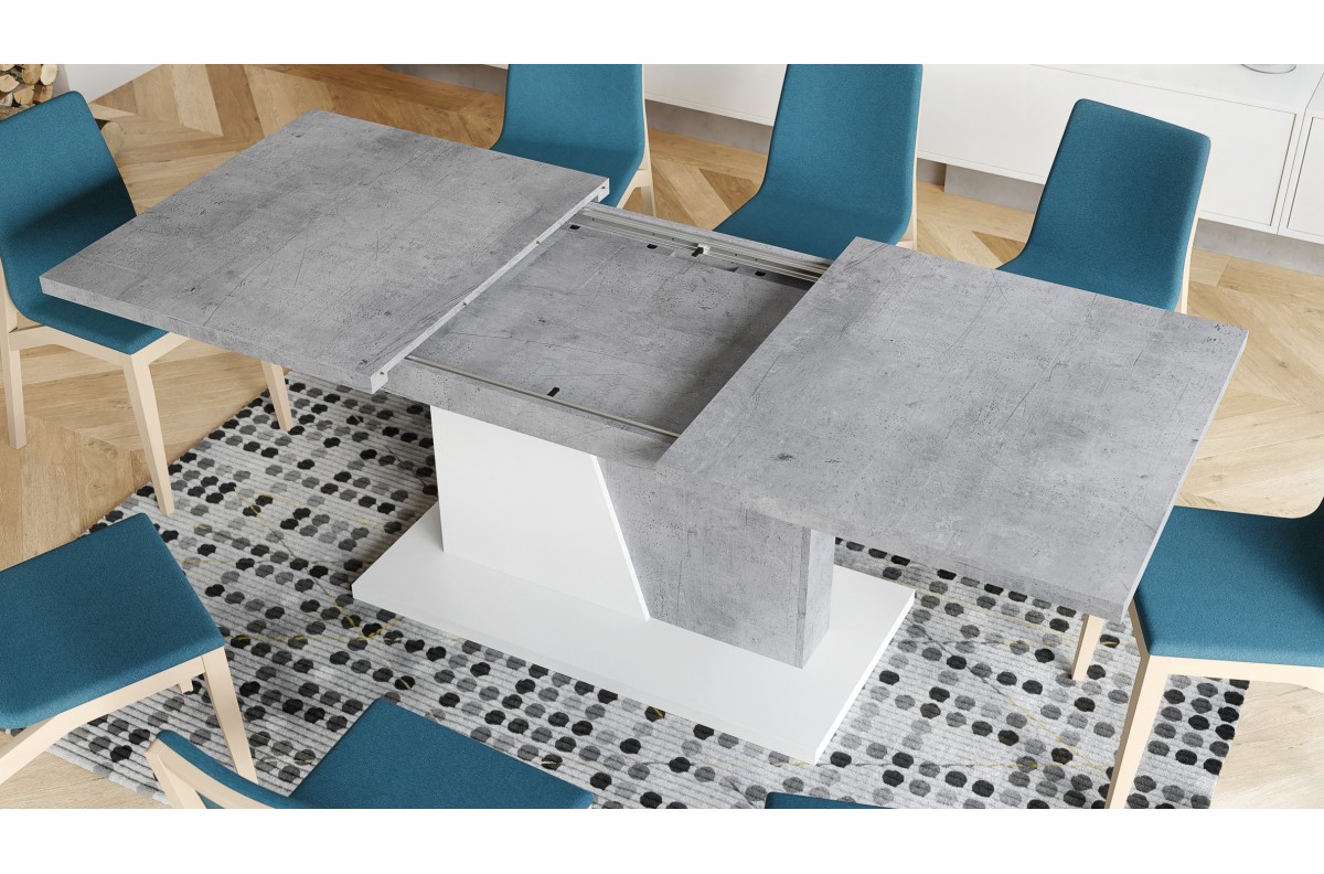 NOBLE NOIR Millenium Concrete/Matinė balta – IKI 218 cm IŠPLĖSTAMASIS STALAS!
