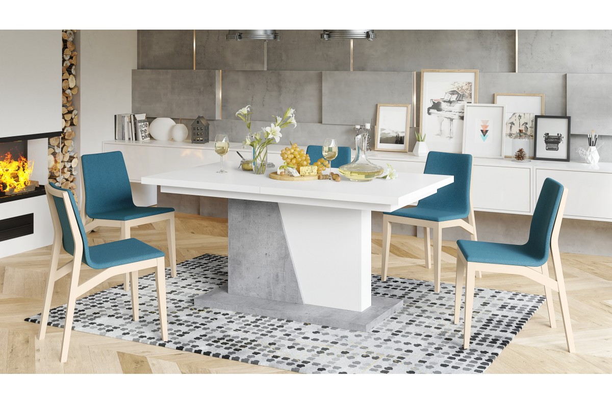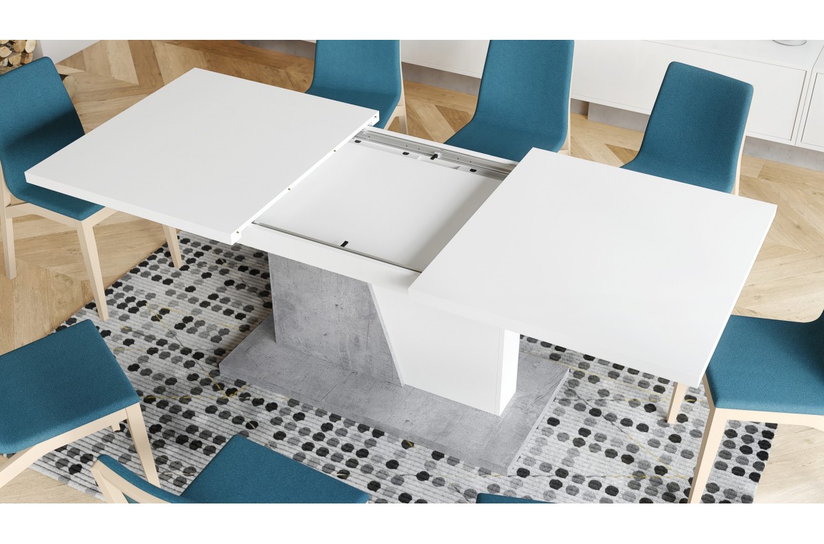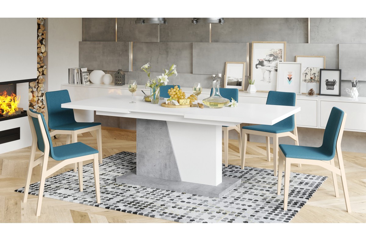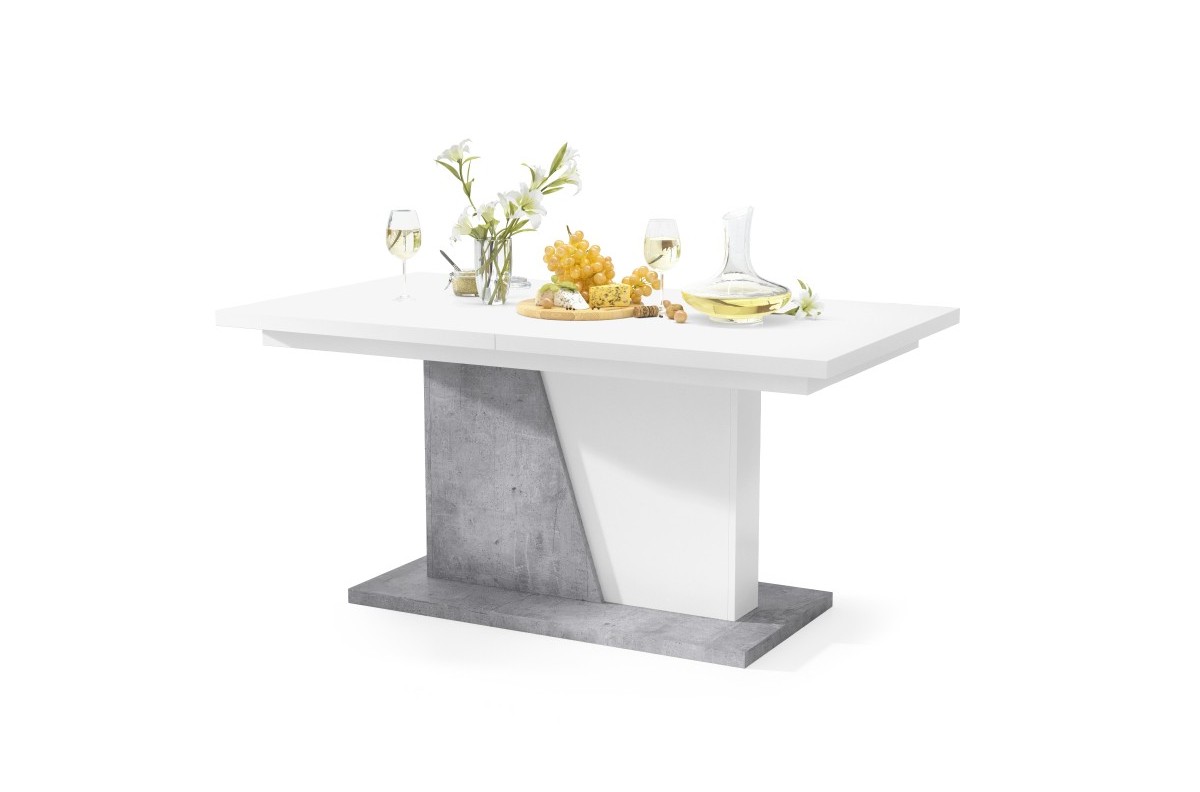 NOBLE NOIR matinė balta/tūkstantmečio betono spalvos – IKI 218 cm prailginamas stalas!