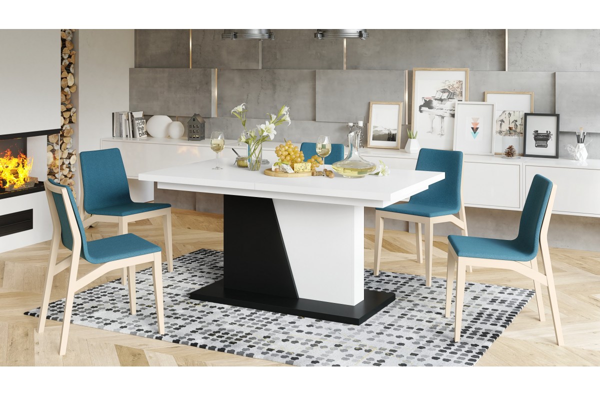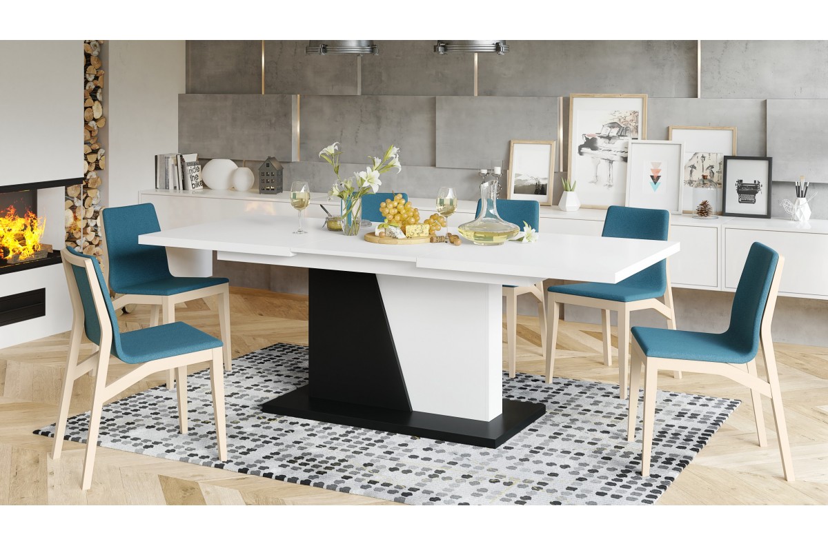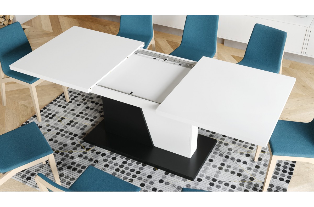 NOBLE NOIR matinės baltos/matinės juodos spalvos – IKI 218 cm prailginamas stalas!