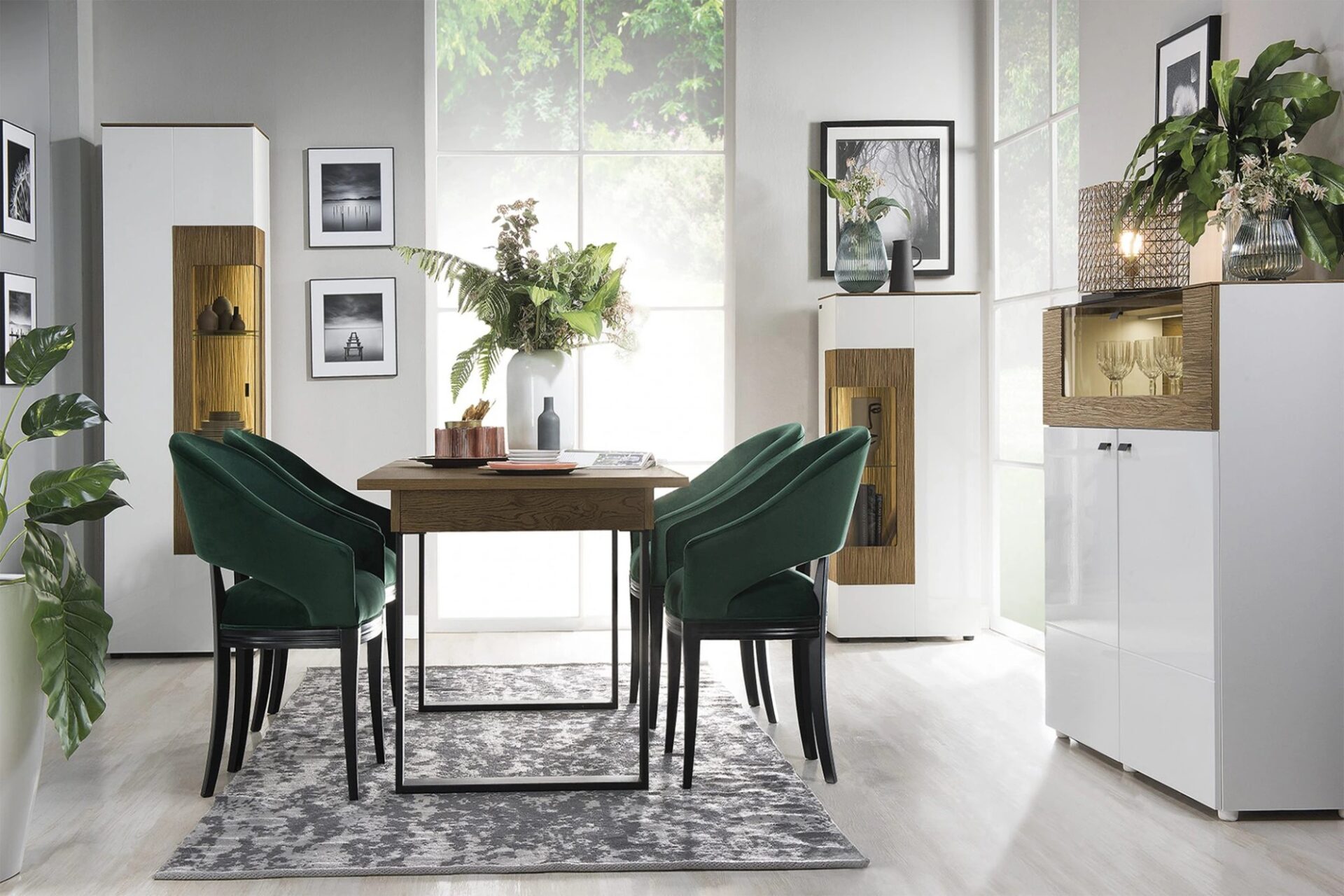 Застекленные боковые стенки витрин и светодиодная подсветка еще лучше подчеркивают теплое очарование текстуры дубового дерева.