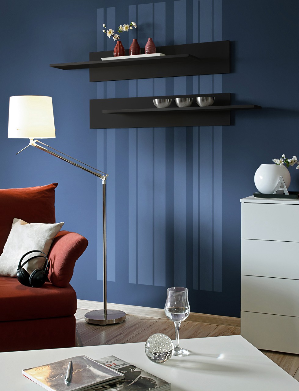 В комплект входят 2 полки, полку можно повесить вплотную к экрану или переместить в любую сторону на 20 см.