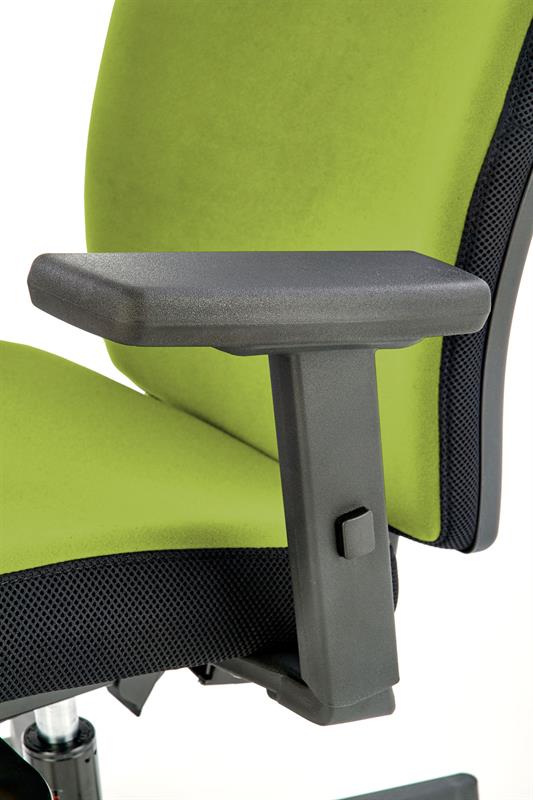 Синхронный механизм, выдвижное сиденье, регулируемые подлокотники в двух положениях, размеры: 93-108/68/65/48-63 см, материал: ткань, цвет: черный/зеленый