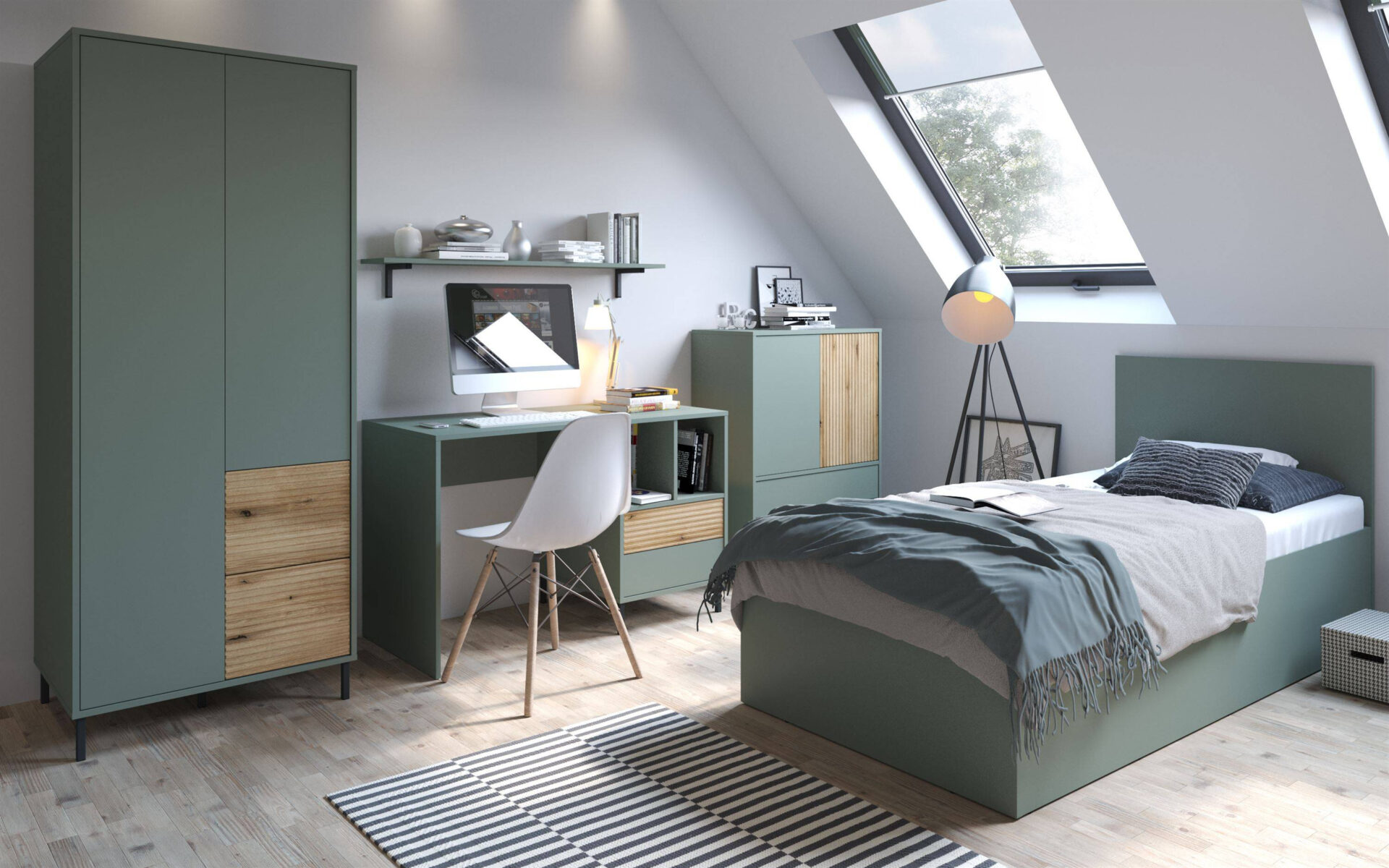Откройте для себя элегантность и функциональность одной из новейших моделей шкафов от Meble Wójcik. Шкаф Pozzi POZS01, выполненный в уникальном серо-зеленом цвете и дополненный акцентами из дуба Coast Evoke, является воплощением современного стиля и идеально дополнит любой интерьер.