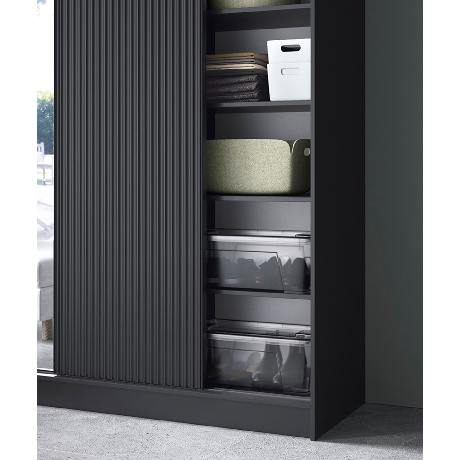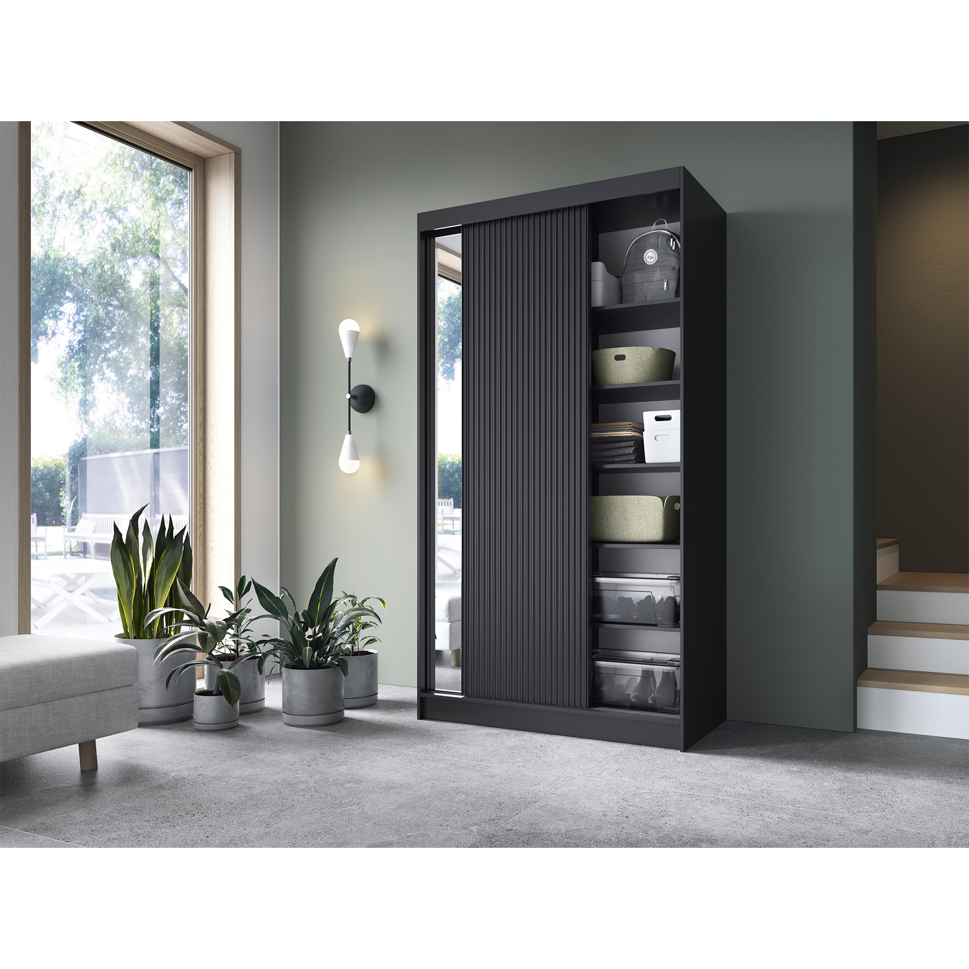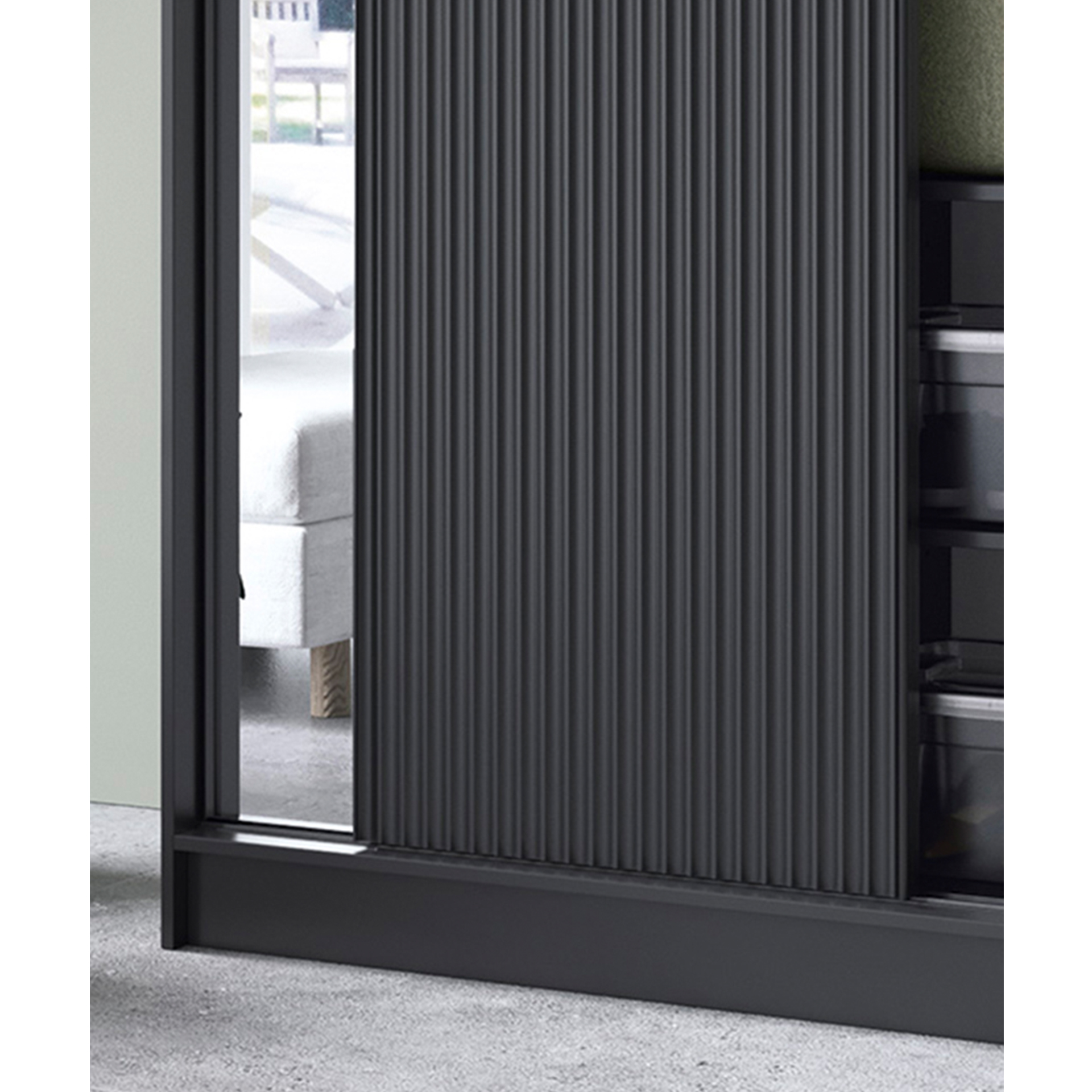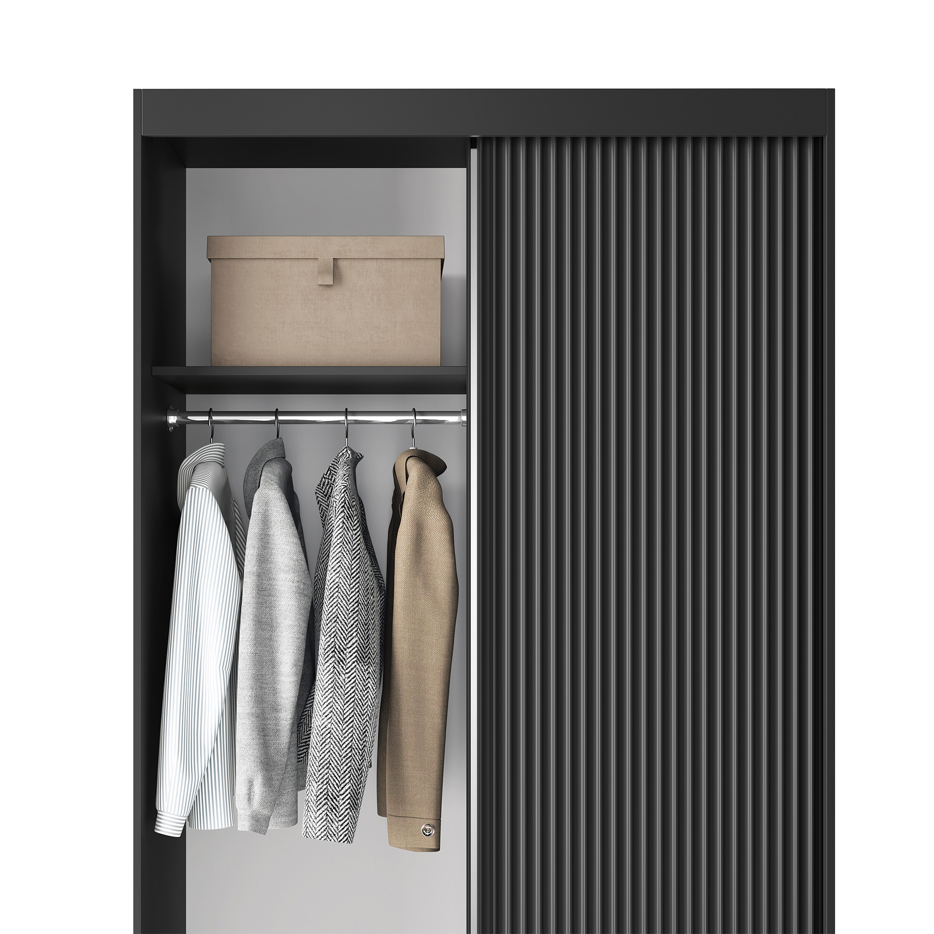 Раздвижной шкаф Prescco с зеркалом — это уникальное и практичное решение для хранения вещей, которое не только организует пространство, но и добавляет элегантности и осветляет интерьер. Этот функциональный шкаф был разработан с учетом максимального комфорта и эстетики. Размеры шкафа: глубина 60 см, ширина 120 см и высота 220 см, что обеспечивает достаточно места для хранения самых разных вещей. Его конструкция основана на прочной МДФ-плите толщиной 16 мм, что гарантирует не только долговечность, но и эстетическую привлекательность. Кромка из АБС-пластика по краям рамы дополнительно защищает шкаф от повреждений, сохраняя его привлекательный внешний вид. Элегантный черный цвет шкафа в сочетании с зеркалом создает современное и просторное ощущение. Раздвижные двери с зеркалом не только визуально расширяют комнату, но и облегчают выбор подходящей одежды, добавляя дополнительную нотку элегантности в интерьер. Две раздвижные двери обеспечивают удобный доступ внутрь шкафа, где расположены шесть полок, каждая грузоподъемностью до 10 кг. Это идеальное место для хранения одежды, аксессуаров или других мелких предметов. Кроме того, входящие в комплект рейки позволяют развешивать одежду, помогая поддерживать порядок и эстетичный вид. Ножки высотой 0,5 см из черного пластика и соответствующие направляющие гарантируют устойчивость. Шкаф Prescco с зеркалом — это не только практичное решение для хранения, но и декоративный элемент, который добавит элегантности и современности вашему интерьеру. Элегантный дизайн и функциональность этого шкафа сделают его центральным элементом организации пространства в вашей комнате.