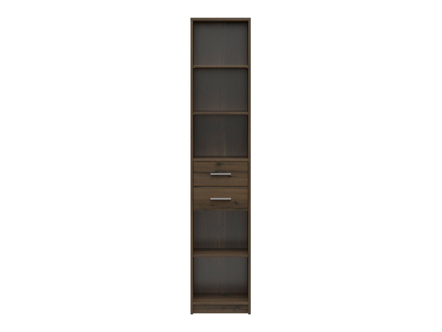 Артикул S435-REG2S/40-DNO Ширина 40 см Глубина 34 см Высота 197 см Коллекция Nepo Plus Цвет благородный дуб Оттенок темное дерево Стиль современный Материал ламинат Количество дверей без дверей Количество ящиков 2 ящика Ручка с ручками Производитель Black Red White Тип мебели Полки и витрины НДС 23% EAN 5906123051996