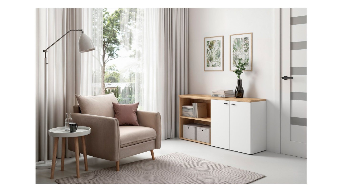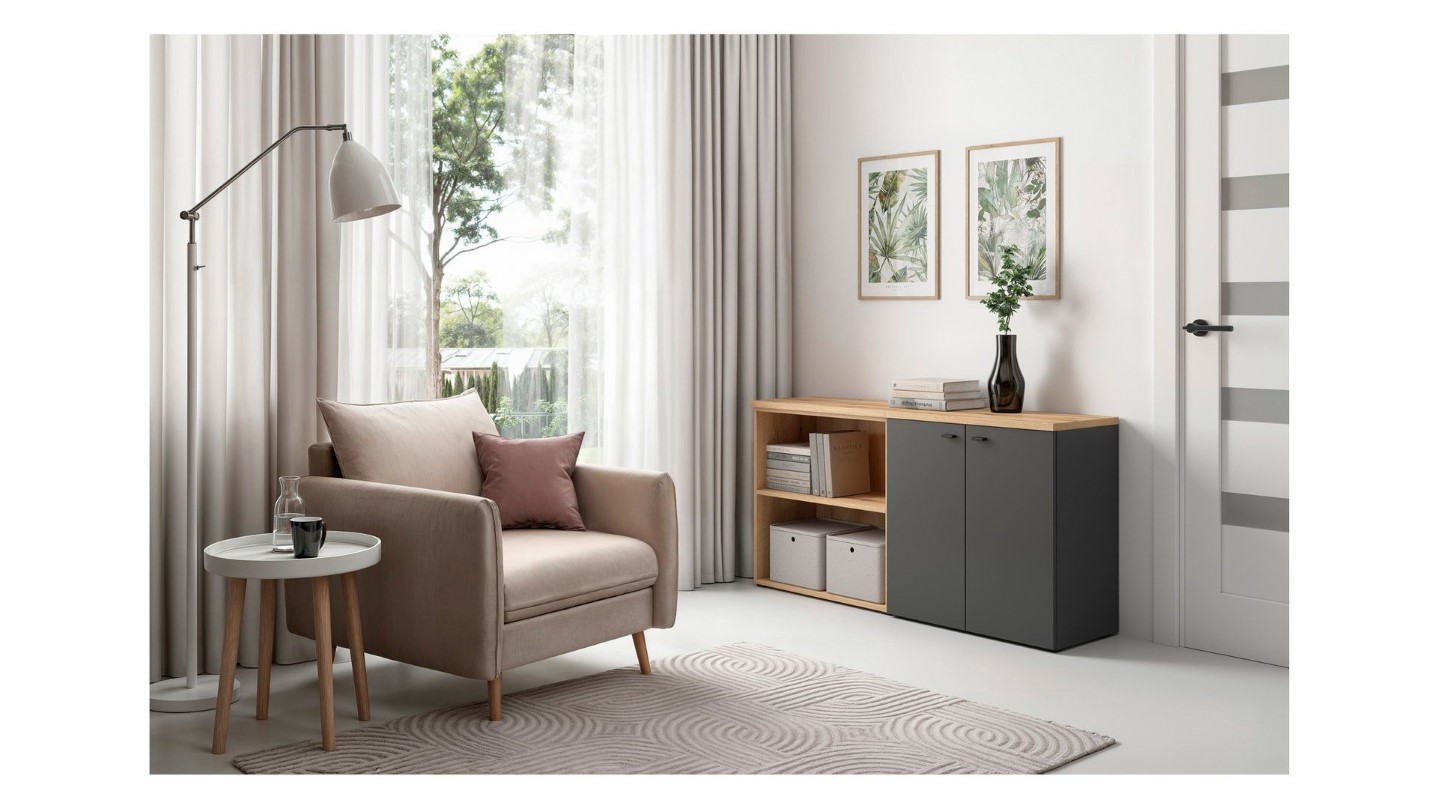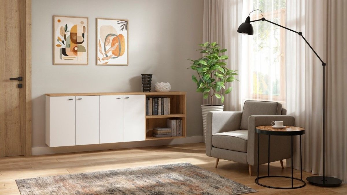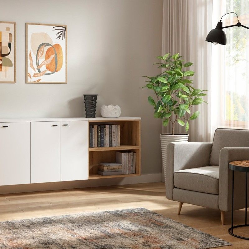 Модульная полка System 64 с открытой стеллажной системой – ваш стильный интерьер. Коллекция System 64 – это современный набор модульной мебели шириной 64 см и высотой 32 или 64 см. Все элементы имеют одинаковую глубину 35 см, что позволяет легко комбинировать их в стеллажи, комоды, витрины или подставки под телевизор. Модули можно размещать на полу, вешать на стену или штабелировать для создания индивидуальных композиций. System 64 доступна в трех цветах – белом, дубовом и графитовом – что позволяет подобрать мебель к любому стилю интерьера. Для витрин доступна дополнительная светодиодная подсветка, а столешницы длиной 64, 128 и 192 см позволяют создавать эстетически привлекательные и функциональные комплекты. Функциональность и конфигурация: Модульная полка System 64 с открытой стеллажной системой – это практичный и визуально легкий предмет мебели, который привнесет порядок и гармонию в любой интерьер. Благодаря своим размерам 64 x 64 x 33 см и максимальной грузоподъемности 14 кг, эта полка идеально подходит для гостиных, офисов, спален и детских комнат. Открытая конструкция с полкой обеспечивает удобный доступ к хранящимся предметам и позволяет эстетично разместить книги, украшения или коробки с безделушками. Прочная ламинированная плита гарантирует долговечность при ежедневном использовании и простоту в уходе. Простая форма и тщательная отделка делают полку идеальным дополнением к современным интерьерам, а возможность настенного монтажа позволяет сэкономить место на полу. Ее также можно комбинировать с другими модулями из коллекции, создавая целостную и функциональную планировку. Особенности: Размеры: 64 x 64 x 33 см, Открытая конструкция с практичной полкой, Максимальная грузоподъемность: 14 кг, Прочная ламинированная плита, устойчивая к повседневному использованию, Простая форма и эстетичная отделка, Доступные цвета: Белый, Дубовый, Графит, Возможность монтажа: Напольный или настенный, Модульная конструкция, совместимая с другими элементами системы 64, Легкая конструкция, подходящая для современных интерьеров, Крепежные элементы для настенного монтажа входят в комплект, Цвет: Дубовый. Краткое описание: Открытый стеллаж системы 64 с полкой — идеальное решение для тех, кто ценит простоту, функциональность и современный дизайн. Он позволяет организовать пространство и создать гармоничную композицию, соответствующую потребностям любого домашнего интерьера.