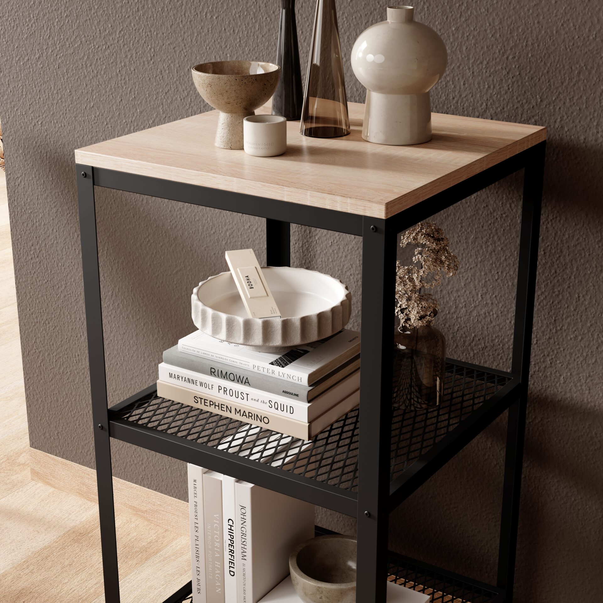 Стеллаж Rolin — это современное и функциональное решение для хранения вещей, которое идеально впишется в любой интерьер — от гостиной до офиса и мастерской. Оснащенный прочным металлическим каркасом в минималистичном дизайне, он обеспечивает устойчивость и долговечность даже при больших нагрузках. Полки из ламинированной доски устойчивы к царапинам и влаге, легко чистятся, что делает стеллаж одновременно практичным и эстетически привлекательным. Благодаря простому и универсальному дизайну, стеллаж Rolin органично вписывается в интерьеры в индустриальном, скандинавском и лофтовом стилях. Доступен в различных цветах, что позволяет подобрать вариант, соответствующий индивидуальным потребностям и вкусам. Идеально подходит для демонстрации декоративных предметов, книг и хранения повседневных вещей. Простая сборка и прочная конструкция делают Rolin долговечным приобретением.
