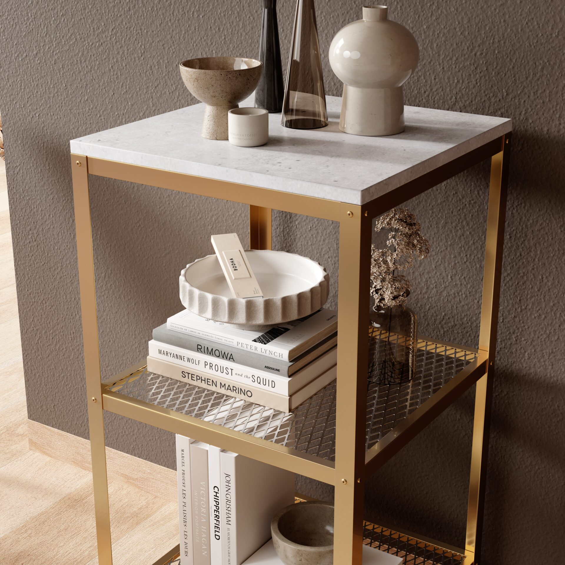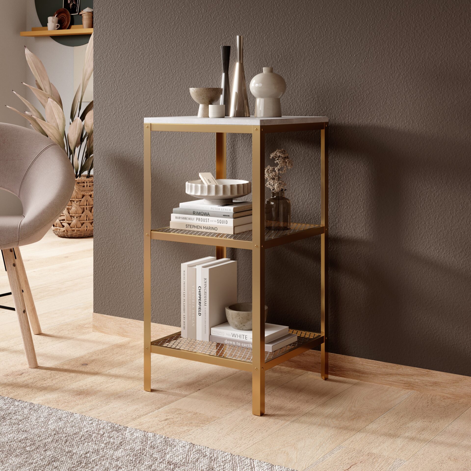 Стеллаж Rolin — это современное и функциональное решение для хранения вещей, которое идеально впишется в любой интерьер — от гостиной до офиса и мастерской. Оснащенный прочным металлическим каркасом в минималистичном дизайне, он обеспечивает устойчивость и долговечность даже при больших нагрузках. Полки из ламинированной доски устойчивы к царапинам и влаге, легко чистятся, что делает стеллаж одновременно практичным и эстетически привлекательным. Благодаря простому и универсальному дизайну, стеллаж Rolin органично вписывается в интерьеры в индустриальном, скандинавском и лофтовом стилях. Доступен в различных цветах, что позволяет подобрать вариант, соответствующий индивидуальным потребностям и вкусам. Идеально подходит для демонстрации декоративных предметов, книг и хранения повседневных вещей. Простая сборка и прочная конструкция делают Rolin долговечным приобретением.