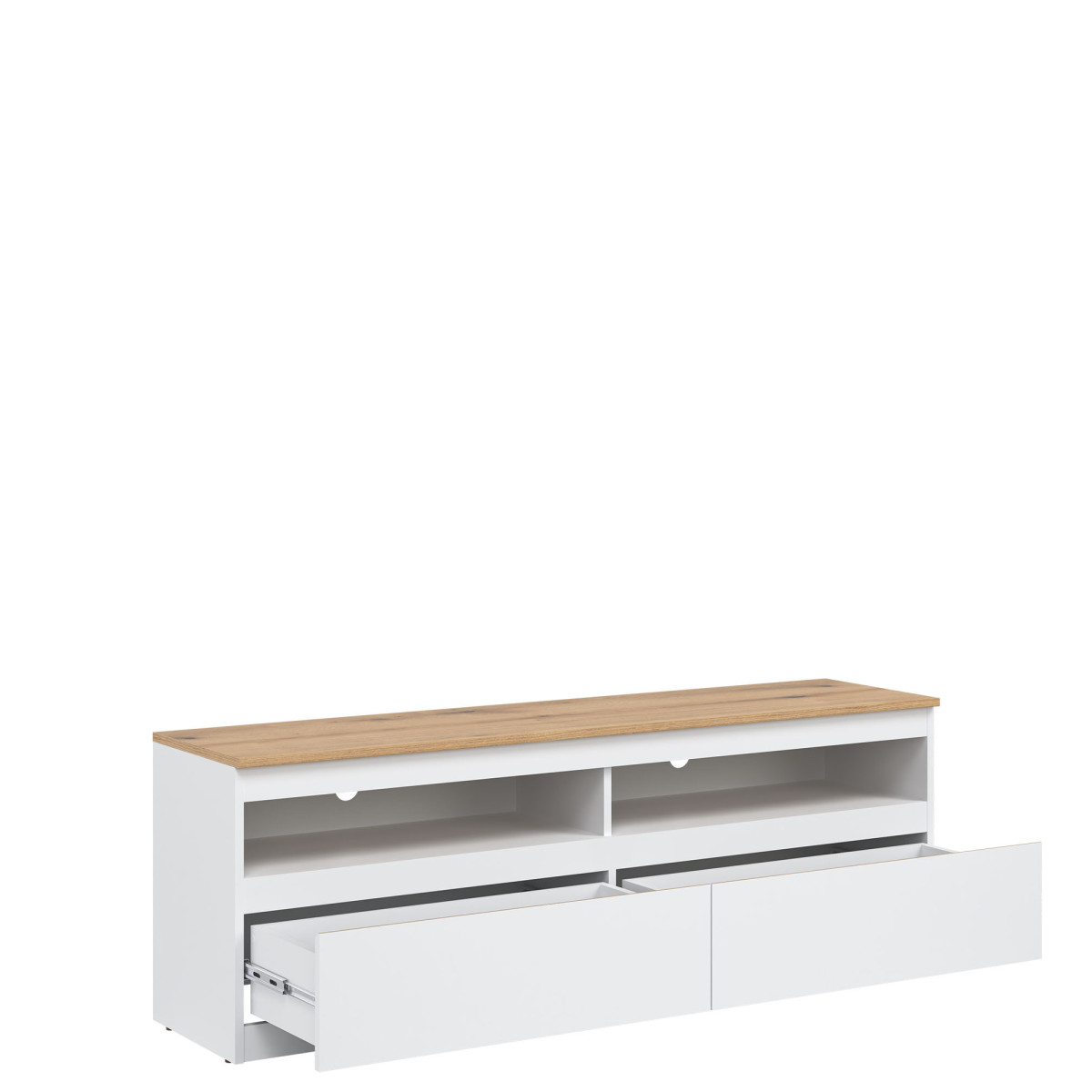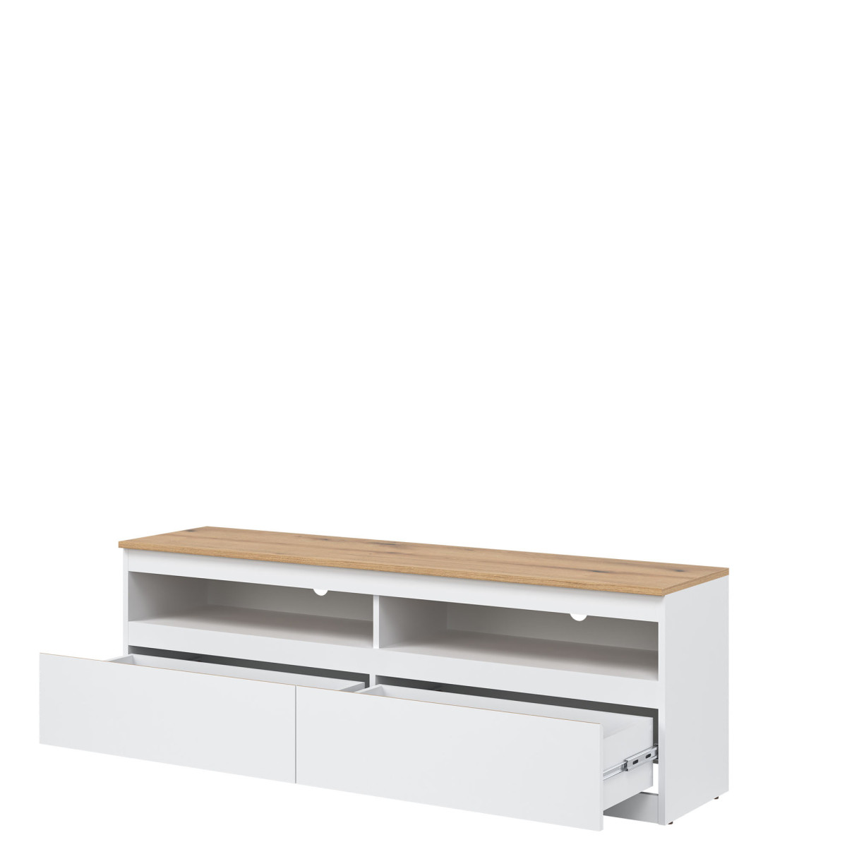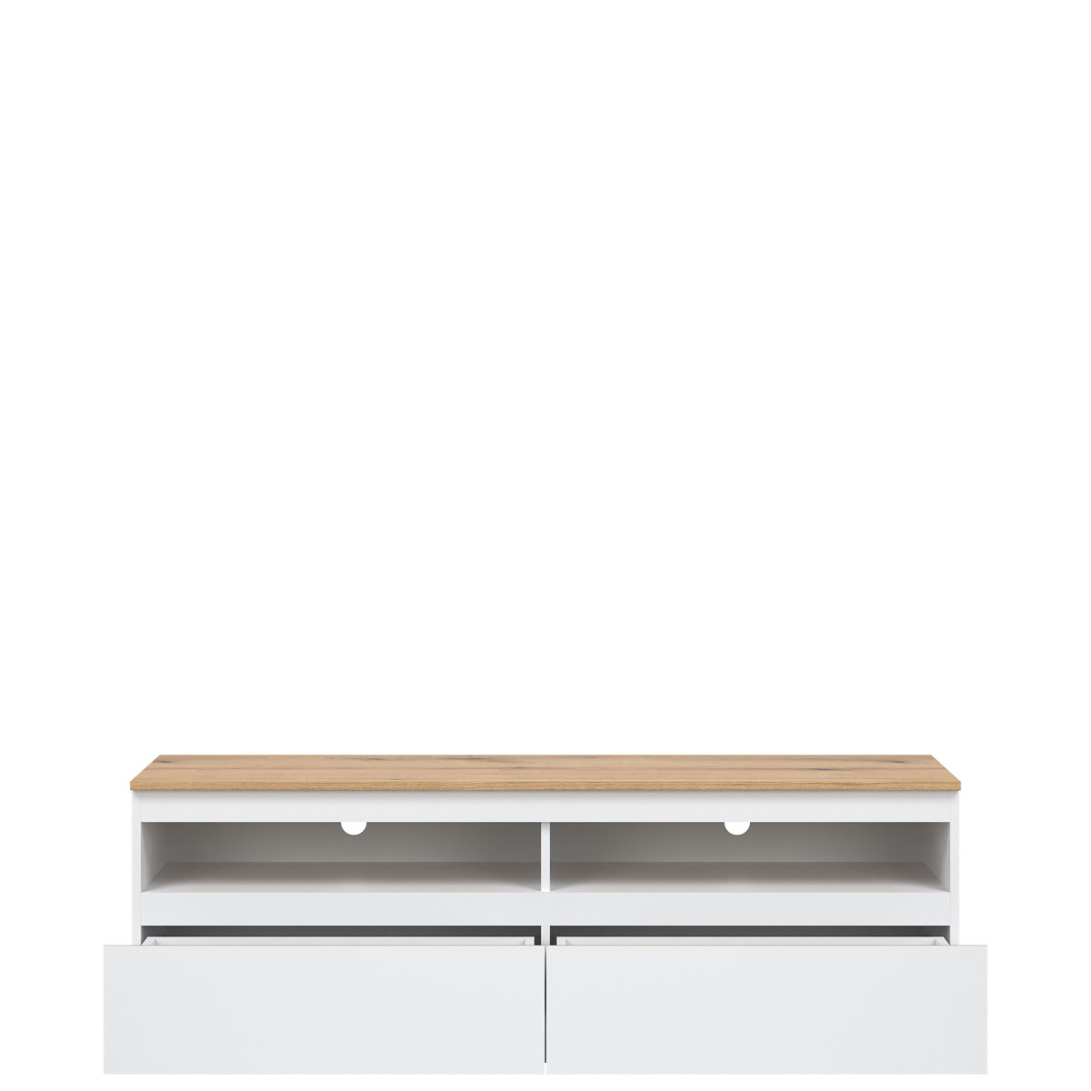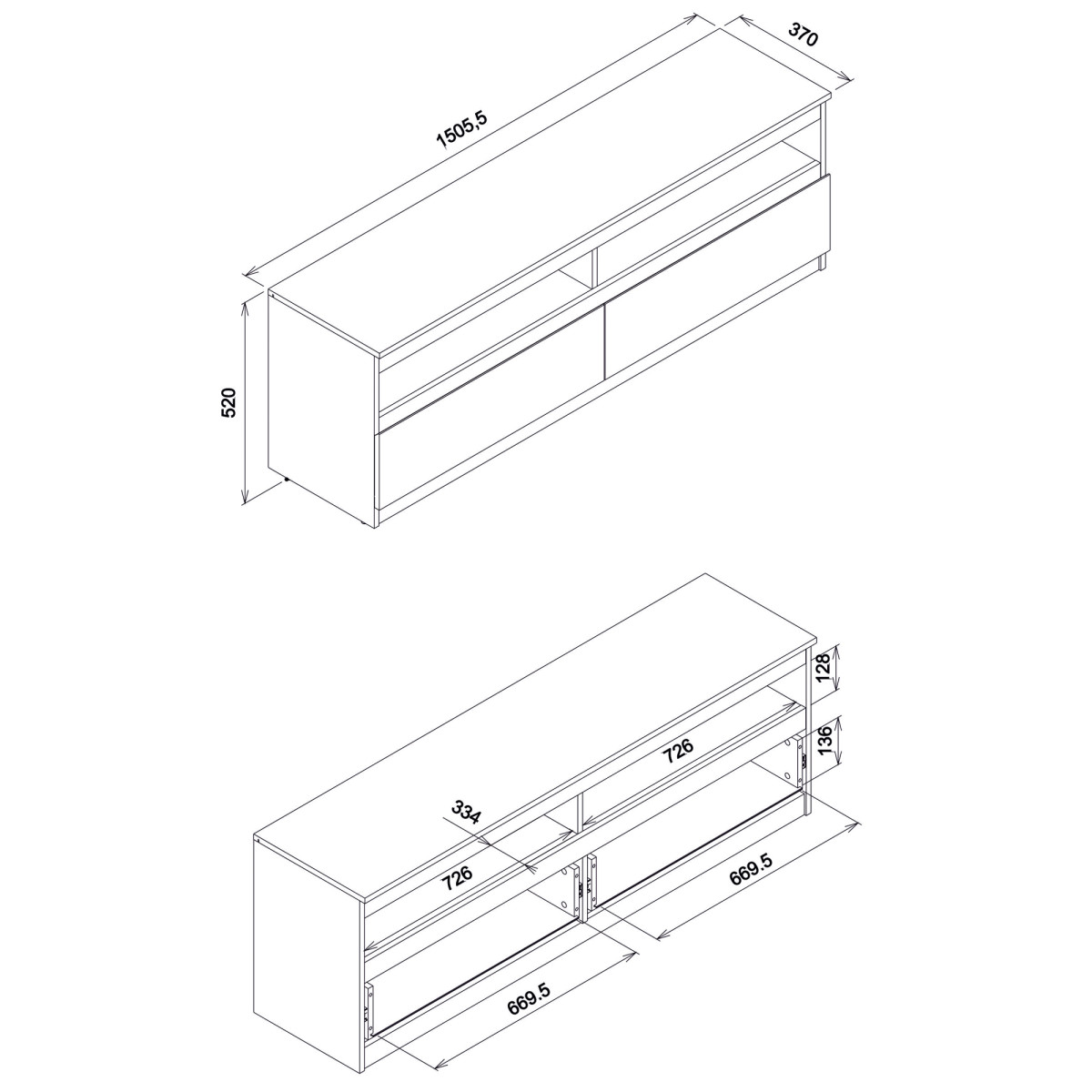 Ширина 150,5 см, глубина 37 см, высота 52 см, вес изделия с упаковкой 39,25 кг. Код/символ производителя RM01. Название коллекции REMI. Количество упаковок: 2. Стиль: Модерн. Комплектация: Инструкция по сборке / принадлежности для сборки. Сборка: Самостоятельная сборка. Материал столешницы / тип / толщина: ламинированная ДСП 16 мм. Материал корпуса / тип / толщина: ламинированная ДСП 16 мм. Цвет видимой части задней стенки: белый. Материал передней панели / тип / толщина: ламинированная ДСП 16 мм. Передняя ручка / тип / цвет: фрезерованная. Отверстие для кабелей RTV: 2 x 50 мм. Направляющие для ящиков: шариковые. Ножки / тип / цвет: цоколь. Количество ящиков: 2.