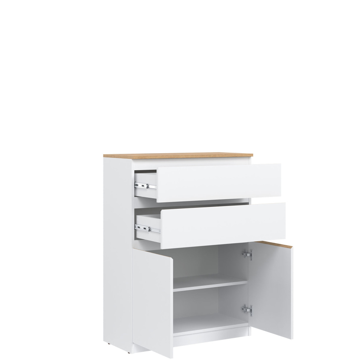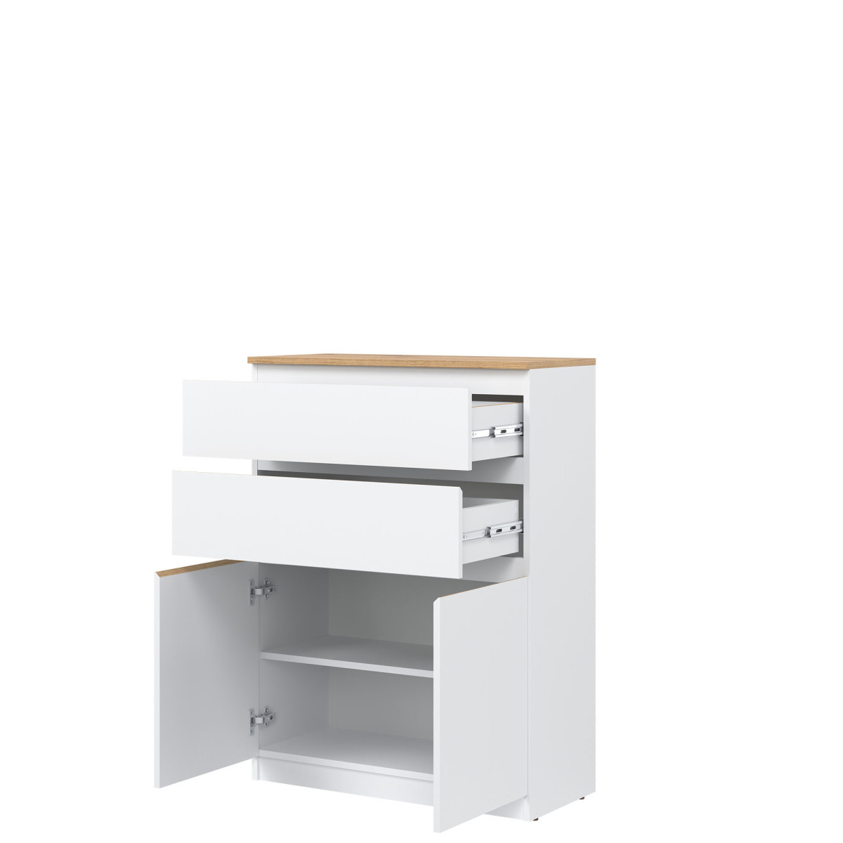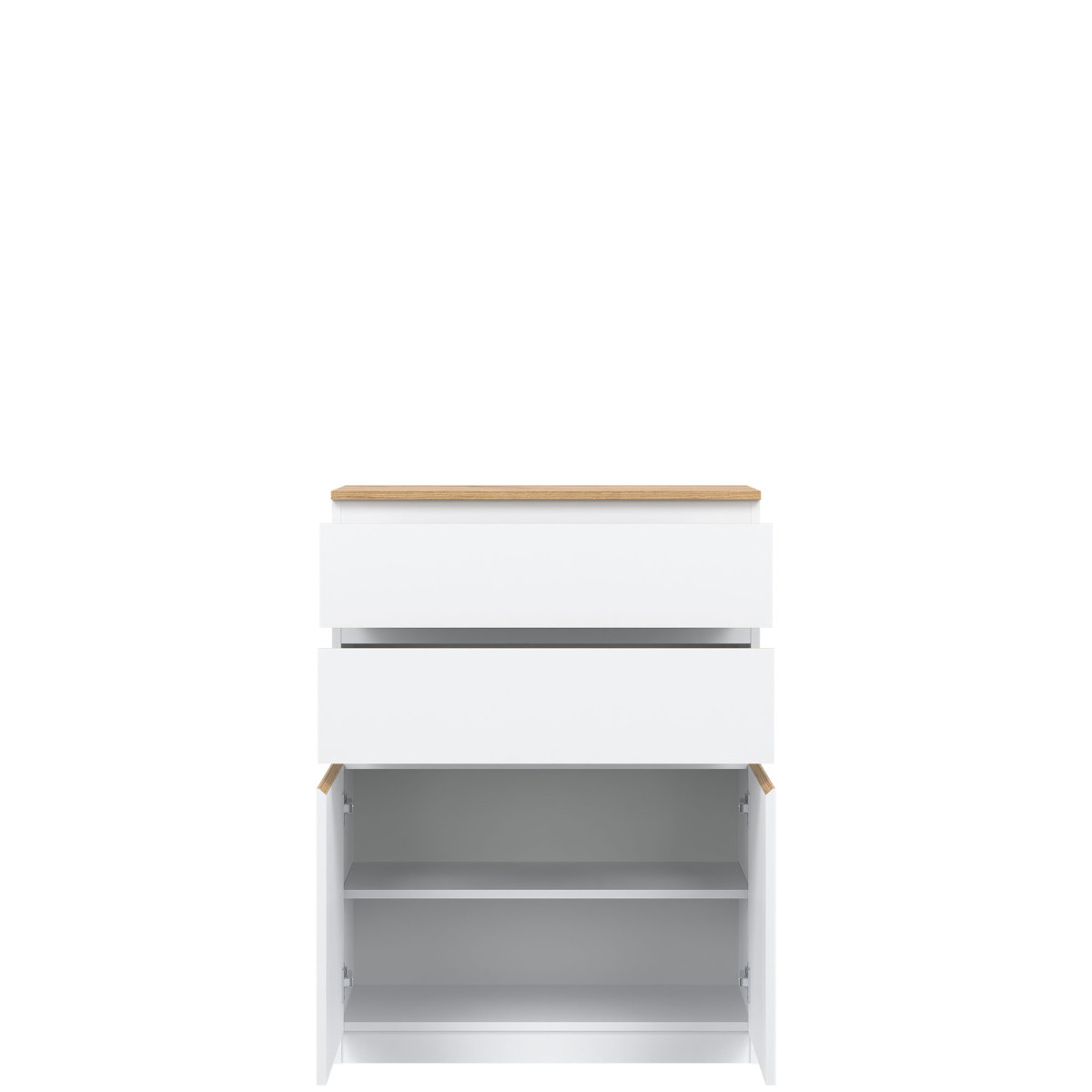 Комод REMI RM05 станет идеальным дополнением к любой гостиной, спальне или даже комнате отдыха. Комод разделен на две секции. В верхней секции расположены два глубоких ящика, а в нижней, за дверцей, — полка для незаметного хранения необходимых вещей. Его оригинальный и привлекательный дизайн делает его идеальным дополнением к любому пространству. Современная цветовая палитра позволяет создать идеальный интерьер, соответствующий вкусу и потребностям пользователей. Эффектная фрезеровка на фасадах, заменяющая традиционные ручки, подчеркивает общий дизайн. Коллекция отличается минималистичным видом и функциональностью. Комод идеально сочетается с другими предметами из серии REMI или используется как самостоятельный элемент, адаптируясь к вашему интерьеру.