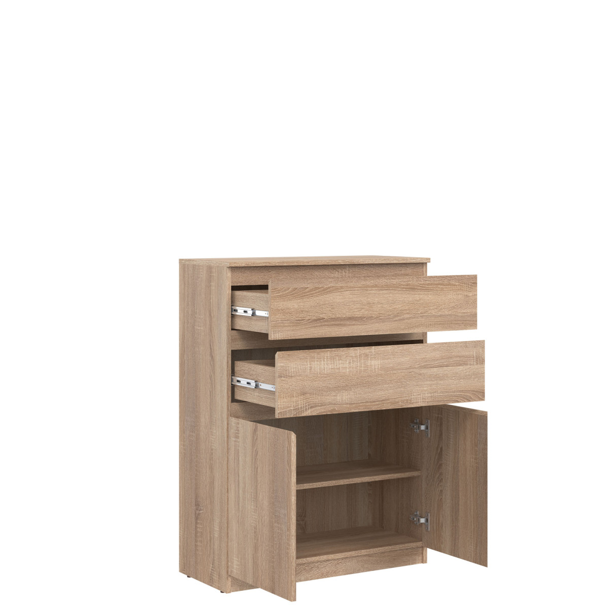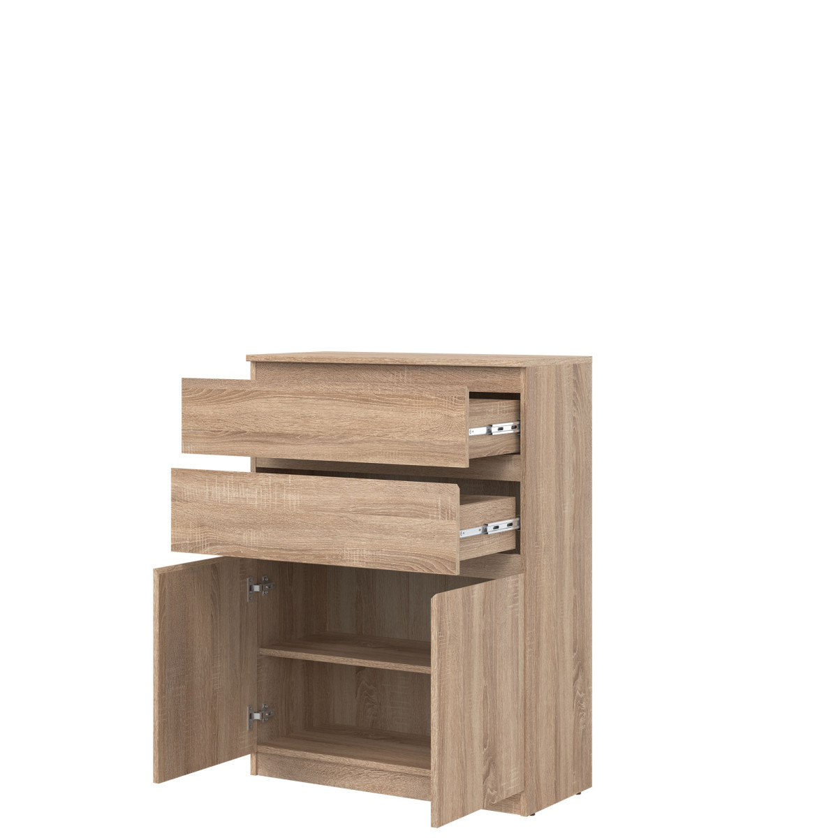Комод REMI RM05 станет идеальным дополнением к любой гостиной, спальне или даже комнате отдыха. Комод разделен на две секции. В верхней секции расположены два глубоких ящика, а в нижней, за дверцей, — полка для незаметного хранения необходимых вещей. Его оригинальный и привлекательный дизайн делает его идеальным дополнением к любому пространству. Современная цветовая палитра позволяет создать идеальный интерьер, соответствующий вкусу и потребностям пользователей. Эффектная фрезеровка на фасадах, заменяющая традиционные ручки, подчеркивает общий дизайн. Коллекция отличается минималистичным видом и функциональностью. Комод идеально сочетается с другими предметами из серии REMI или используется как самостоятельный элемент, адаптируясь к вашему интерьеру.