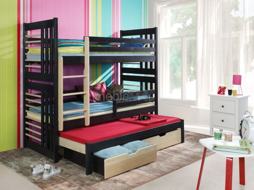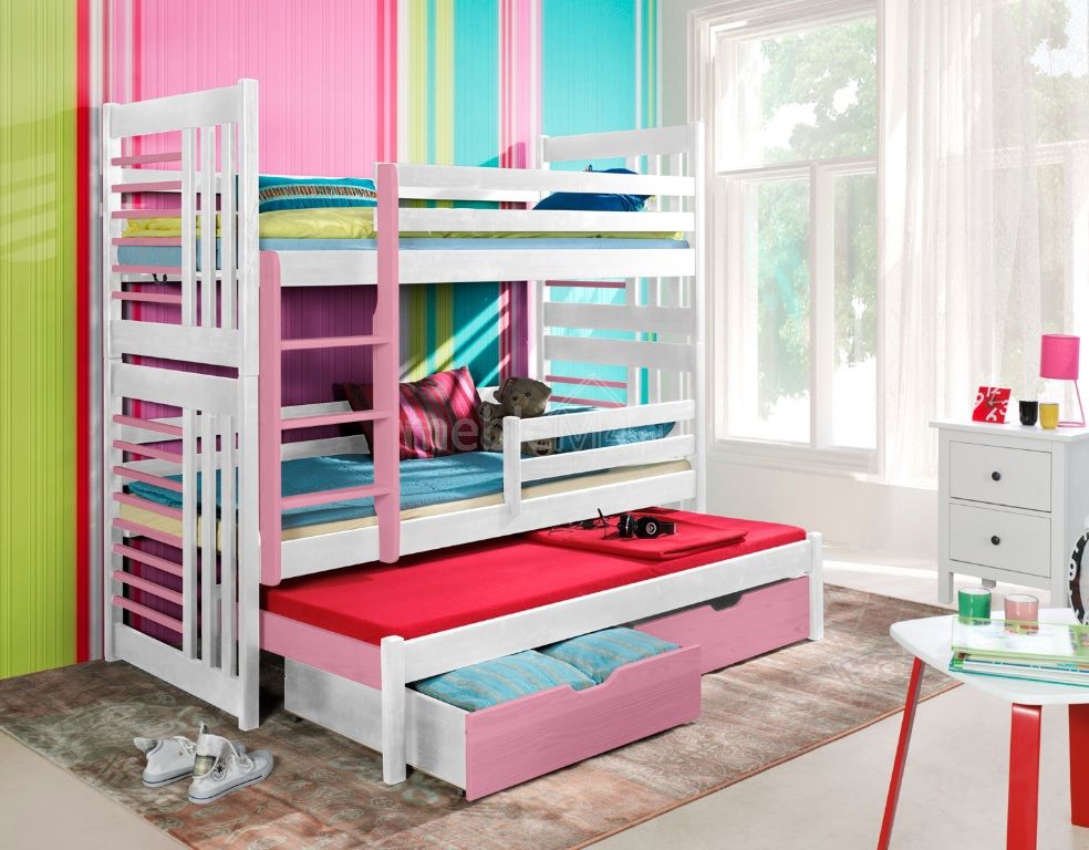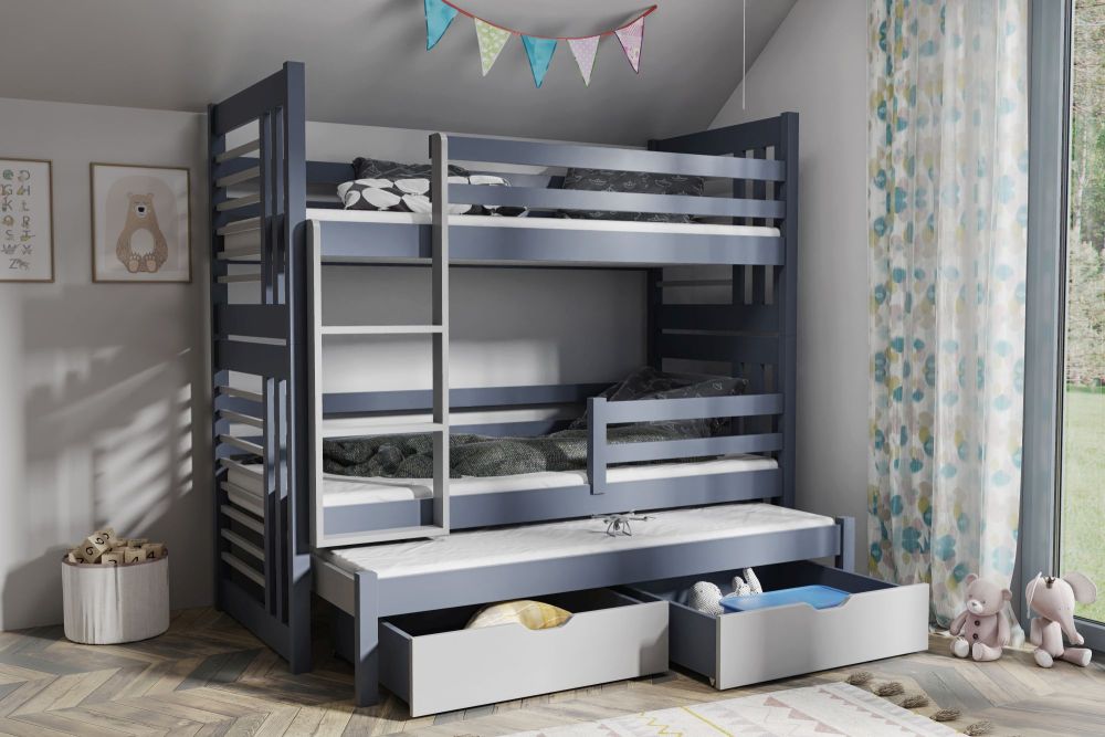 ROLAND III trivietė dviaukštė lova su stalčiais 90×200 cm