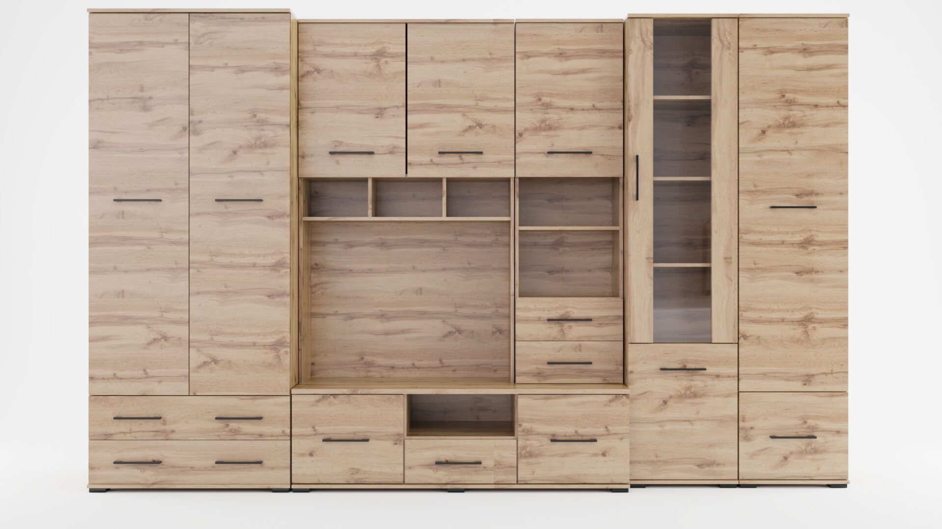 Комплект ROXI B — это исключительно привлекательная, универсальная, большая и современная настенная мебель. Благодаря продуманному дизайну, она очень удобна и практична в использовании. Изготовленная из высококачественной ламинированной плиты, она прослужит долгие годы. Идеально подходит для гостиных и зон отдыха. Мебель просторная и доступна в различных цветах. Размеры: