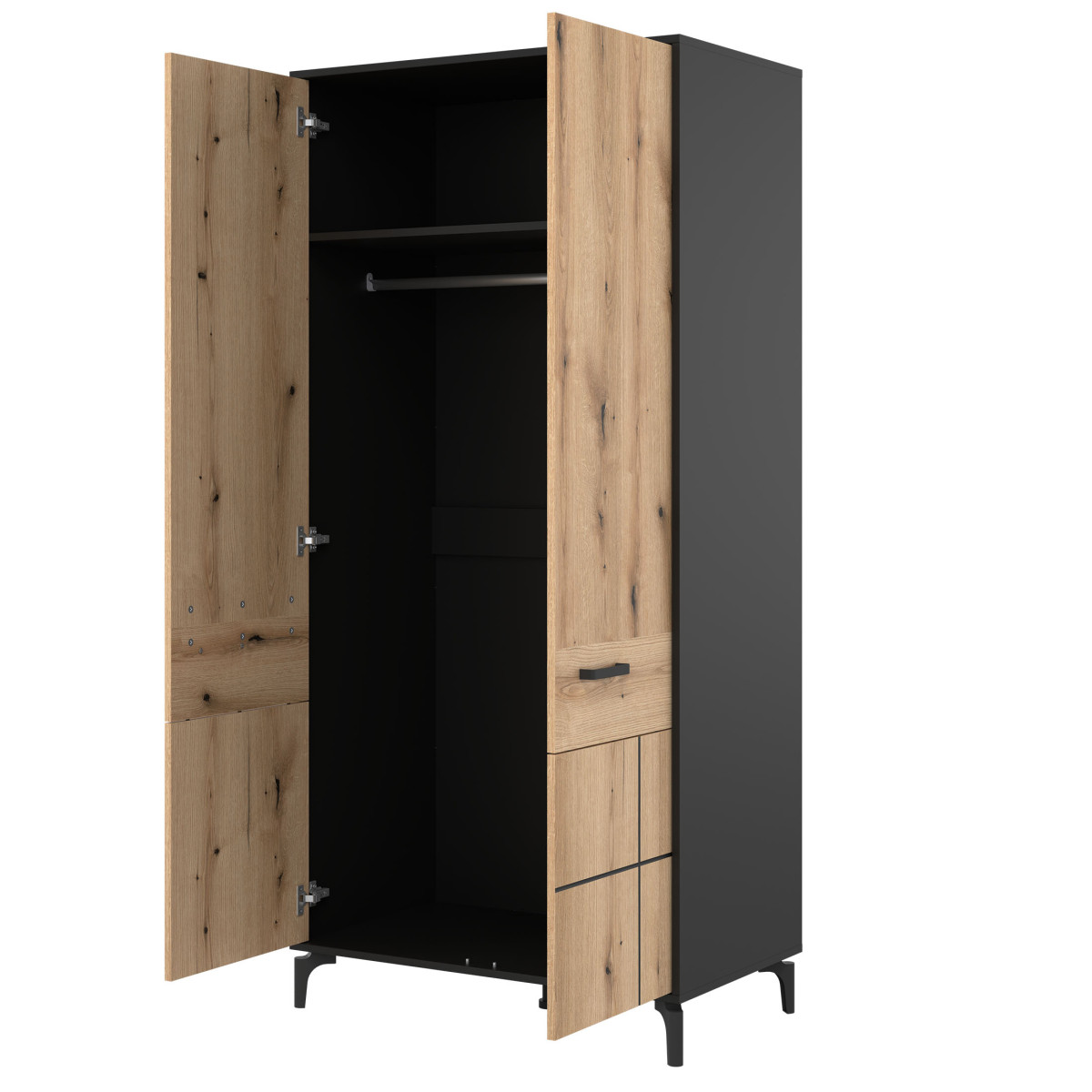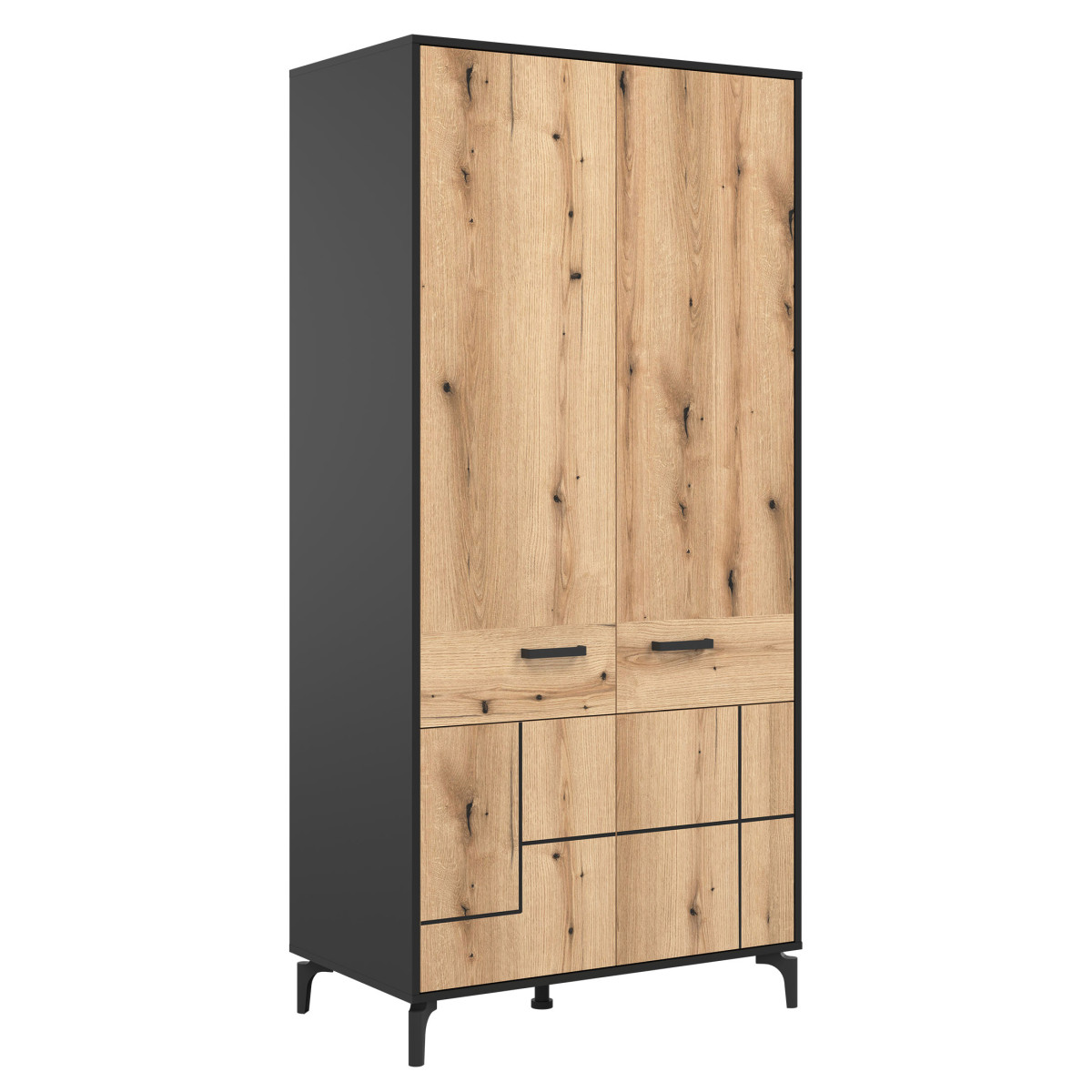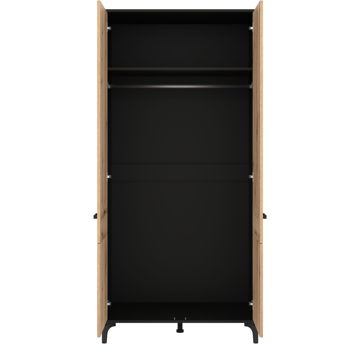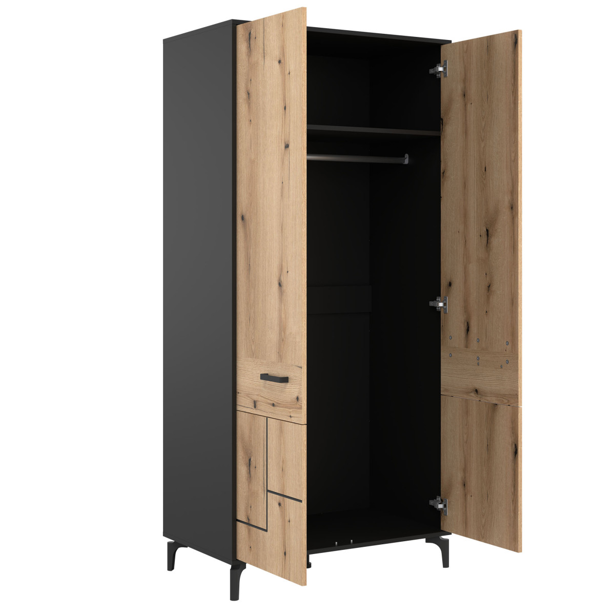 Шкаф S-LINE SL08 идеально подходит для гостиной, спальни или даже спальни. Этот двухдверный шкаф оснащен штангой для вешалок и полкой, обеспечивая достаточно места для хранения. Он не занимает много места и отличается высокой универсальностью. Это современный вариант для интерьеров в простом индустриальном стиле и не только. Простой дизайн дополнен модными утопленными черными линиями, создавая стильный общий вид. Шкаф идеально сочетается с другими предметами из серии S-LINE или может использоваться как самостоятельный элемент, адаптируясь к декору вашей комнаты.