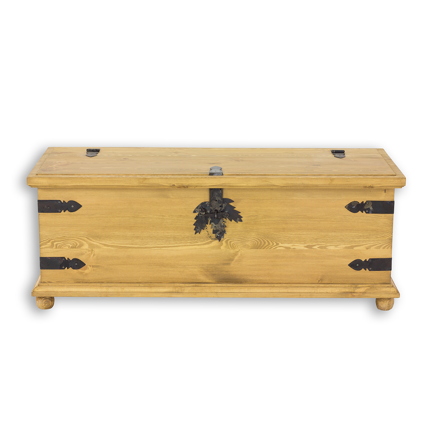 Комод KS702 с вощеным покрытием идеально дополнит и украсит любой интерьер. Выполненный в деревенском стиле, он полностью изготовлен из массива сосны. В спальне он обеспечит дополнительное место для хранения подушек и одеял, послужит сиденьем в прихожей, когда надеваешь обувь, и легко заменит журнальный столик в гостиной. Устойчивый и практичный, он стоит на деревянных ножках шарообразной формы. Он имеет одну прочную крышку, которая открывается только в одном направлении. В его конструкции используются изготовленные вручную металлические петли и ручки с состаренной отделкой. Комод KS702 добавит неповторимую атмосферу любому интерьеру, наполненную теплом и уютом.