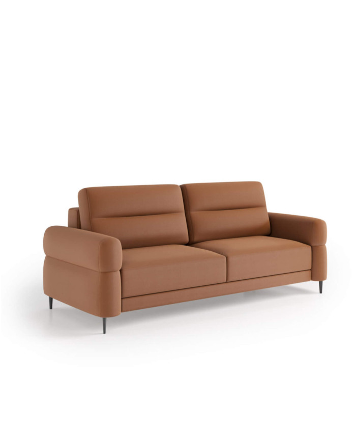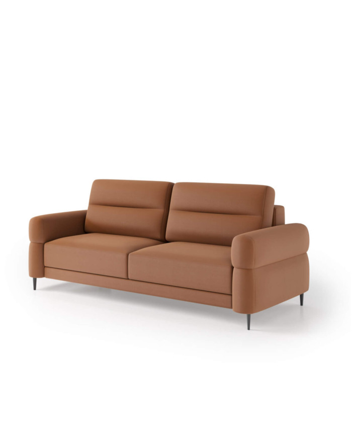 Привлекательный и очень стильный скандинавский диван станет идеальным дополнением практически к любой современной гостиной или зоне отдыха. Диван отличается характерными боковыми панелями и горизонтальной строчкой на подушках спинки. Этот диван средних размеров — отличное решение для тех, кто ценит сочетание высокой эстетики и функциональности. Пружины Bonnell и высокоэластичная пена в подушках сиденья обеспечивают комфорт пользователя. Диван оснащен функцией DL для ежедневного сна и просторным спальным отсеком. Вся конструкция опирается на металлические ножки высотой 12 см. Диван доступен в широком ассортименте декоративных тканей, образцы которых включены в конструктор товара. Требуется минимальная сборка.