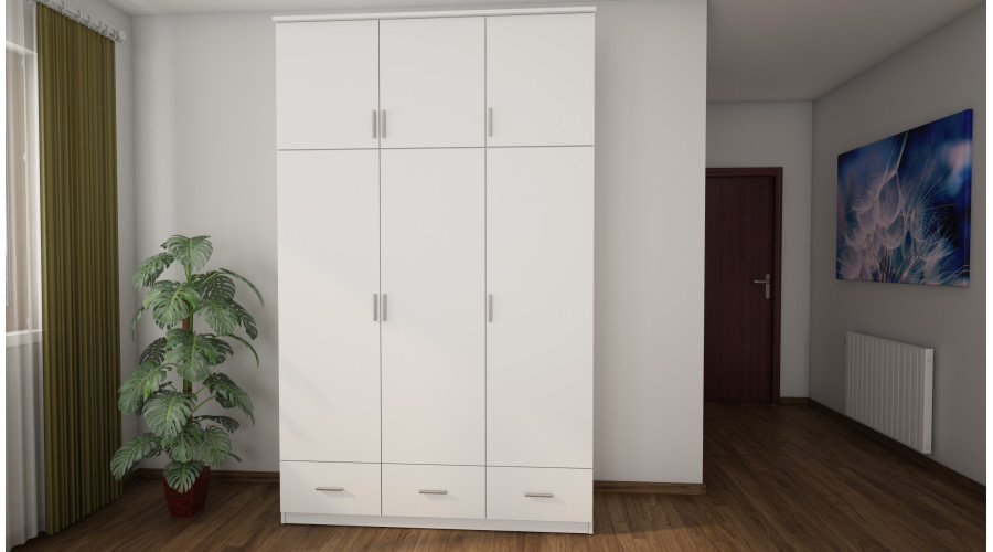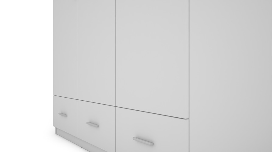 Шкаф размером 150×242 см от emeblast.pl оснащен тремя просторными ящиками, обеспечивающими удобное хранение мелких вещей, таких как нижнее белье, носки и аксессуары. Поддерживать порядок в гардеробе станет проще и эффективнее.