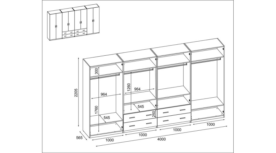 Шкаф 400/220 разработан для максимального увеличения пространства для хранения. Оснащенный многочисленными аксессуарами, он обеспечивает превосходную организацию и удобный доступ к одежде и другим вещам.