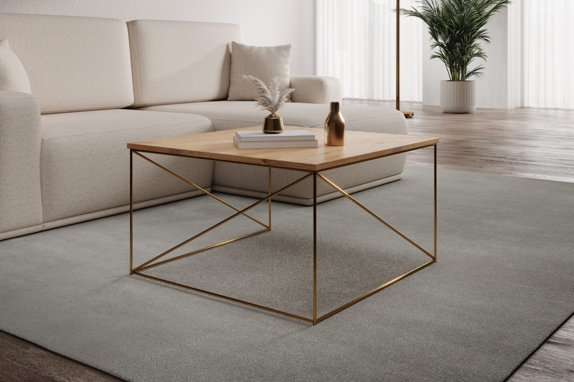 Nelia kavos staliukas auksinis/Lancelot ąžuolas ADRK