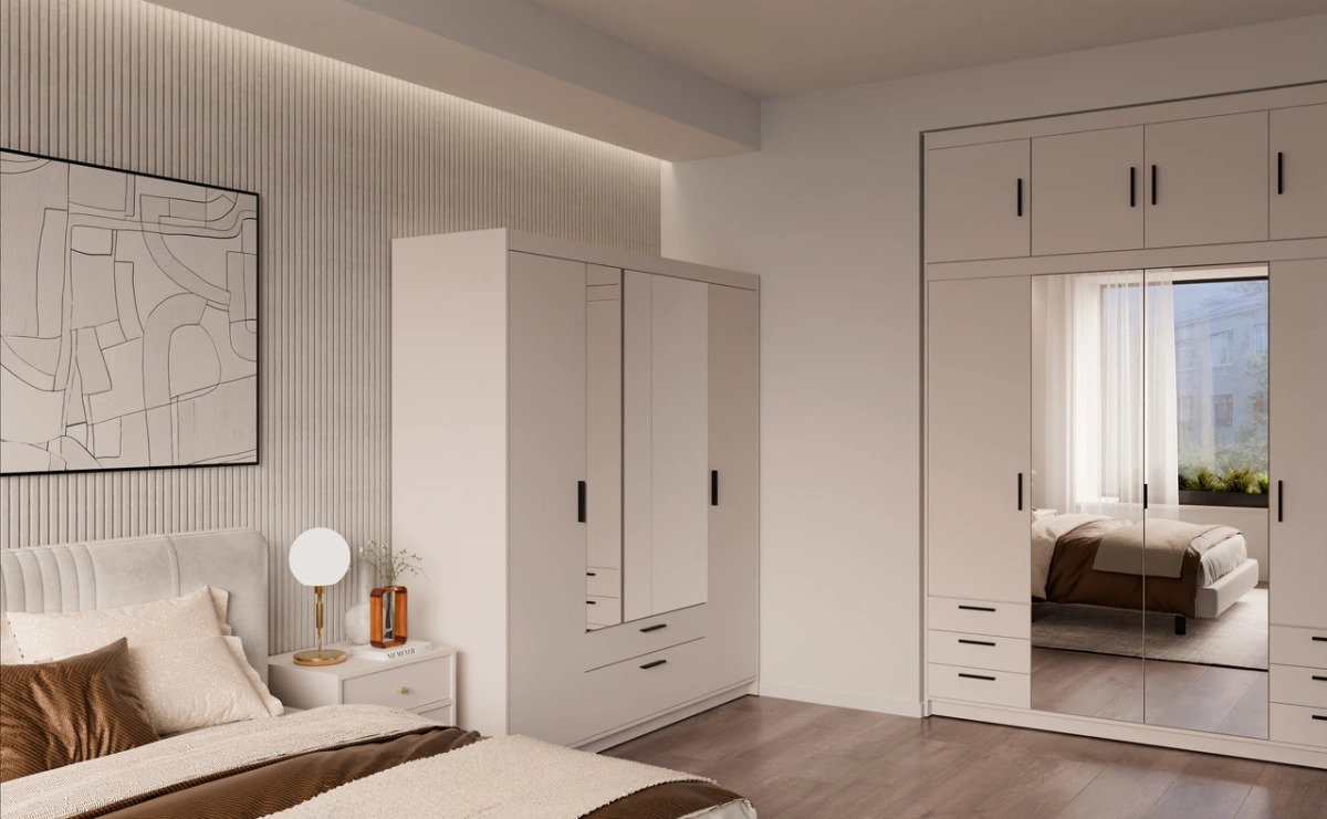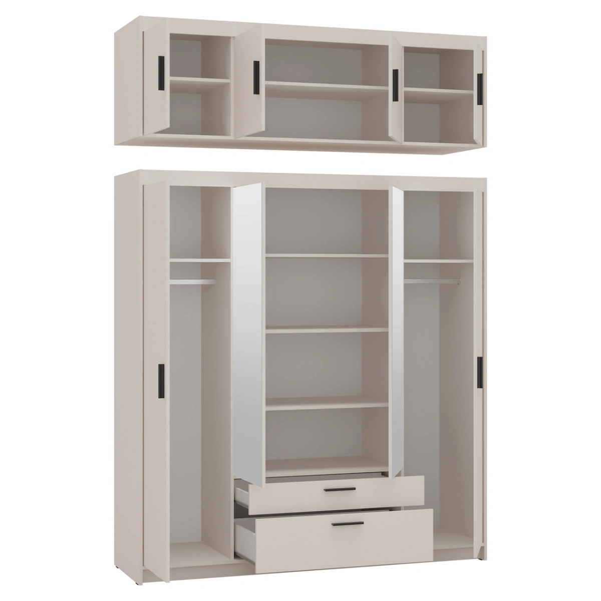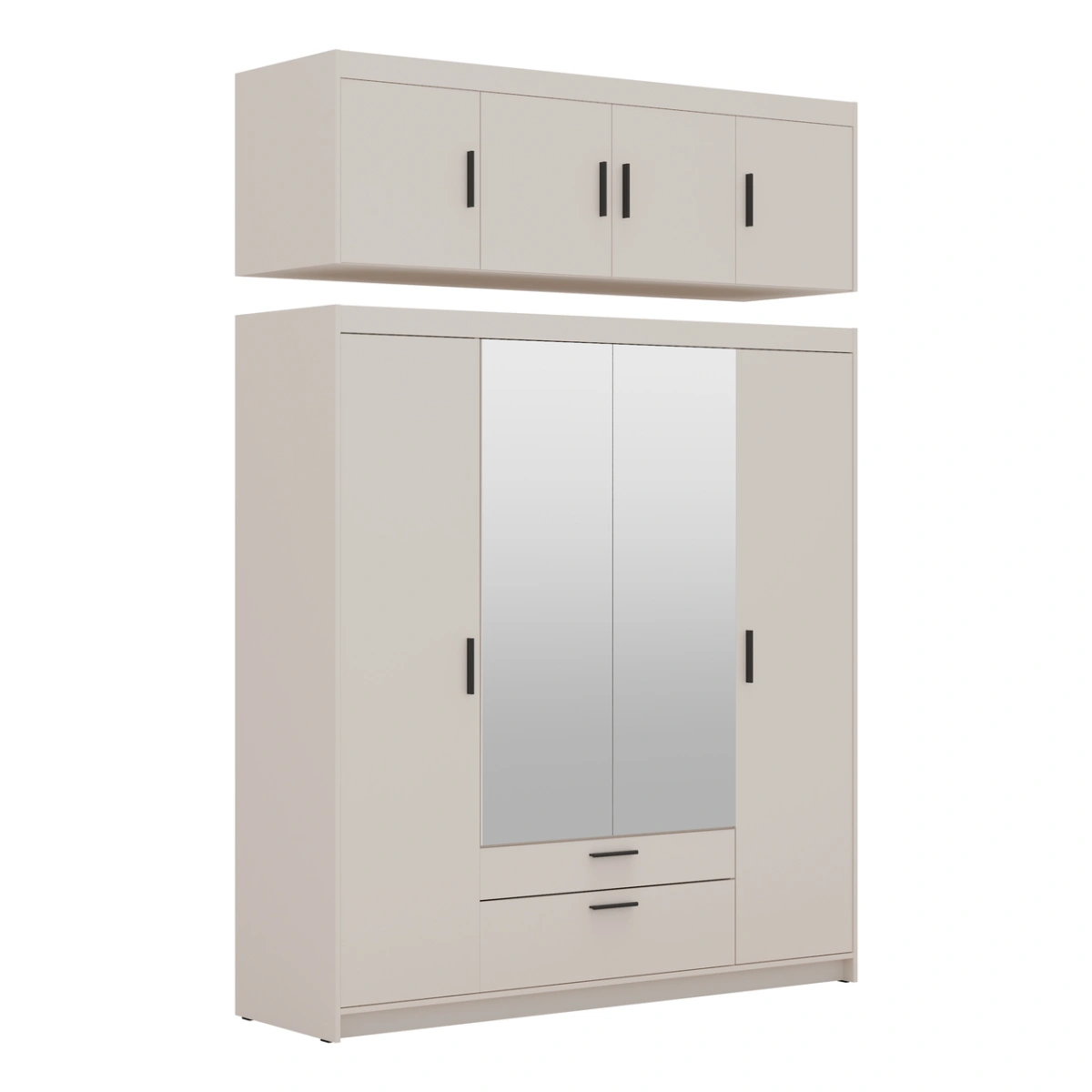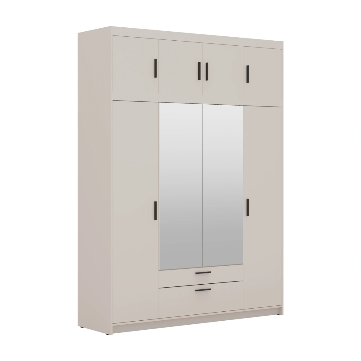 Keturių durų spinta su veidrodžiais Elena 4D smėlio spalvos