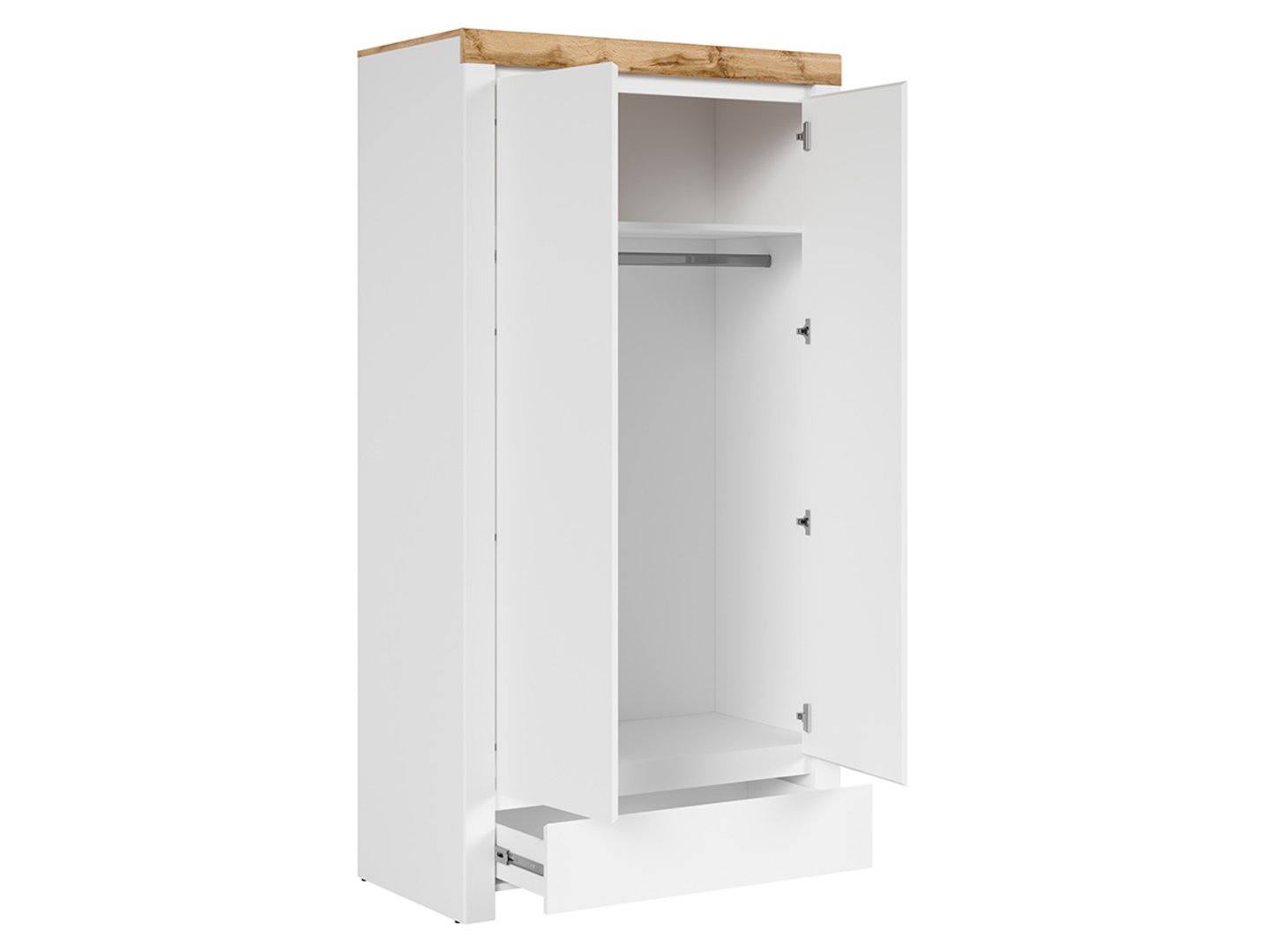 Шкаф Holten – идеальное место для хранения вещей. В каждом доме необходимо место для хранения, от одежды до различных предметов повседневного обихода. Шкаф Holten – это предмет мебели, который не только позволяет хранить все необходимое, но и добавляет элегантности вашему пространству. Этот двухдверный шкаф Holten предлагает достаточно места для хранения вашей одежды и многих других вещей. В основном отделении шкафа есть вешалка, на которую вы можете повесить одежду, чтобы она была аккуратной и легкодоступной. Кроме того, удобная верхняя полка позволяет хранить вещи, которые не обязательно вешать. Это идеальное место для постельного белья, полотенец или других предметов домашнего обихода. Практичный ящик в нижней части шкафа позволяет эффективно организовать пространство. Вы можете хранить вещи, которые хотите иметь под рукой, сохраняя при этом порядок в шкафу. Дизайн шкафа Holten – это сочетание элегантности и функциональности. Корпус мебели отделан матовым белым цветом, что придает ему современный характер и утонченное очарование. Фасады покрыты лаком, что добавляет изделию эффектный блеск и элегантность. Уникальной деталью является столешница из дуба Вотан с характерной текстурой, придающей изделию естественное очарование и теплоту. Массивные ламели корпуса полностью отражают современный стиль шкафа, а гладкая поверхность фасадов без ручек добавляет минималистичный штрих. Доводчики с плавным закрыванием повышают комфорт, делая открывание и закрывание шкафа плавным и бесшумным. Коллекция Holten предлагает множество элементов, позволяющих создавать гармоничные интерьеры гостиной. Вы можете комбинировать различные предметы мебели и аксессуары, чтобы создать уникальное пространство, отражающее ваш личный стиль и потребности. Короче говоря, шкаф Holten — это не просто место для хранения, но и элегантный предмет мебели, который добавит неповторимый шарм вашему пространству. С акцентом на функциональность и эстетику, этот шкаф удовлетворит ожидания любителей современного дизайна и тех, кто ценит порядок и организованность в своем доме.