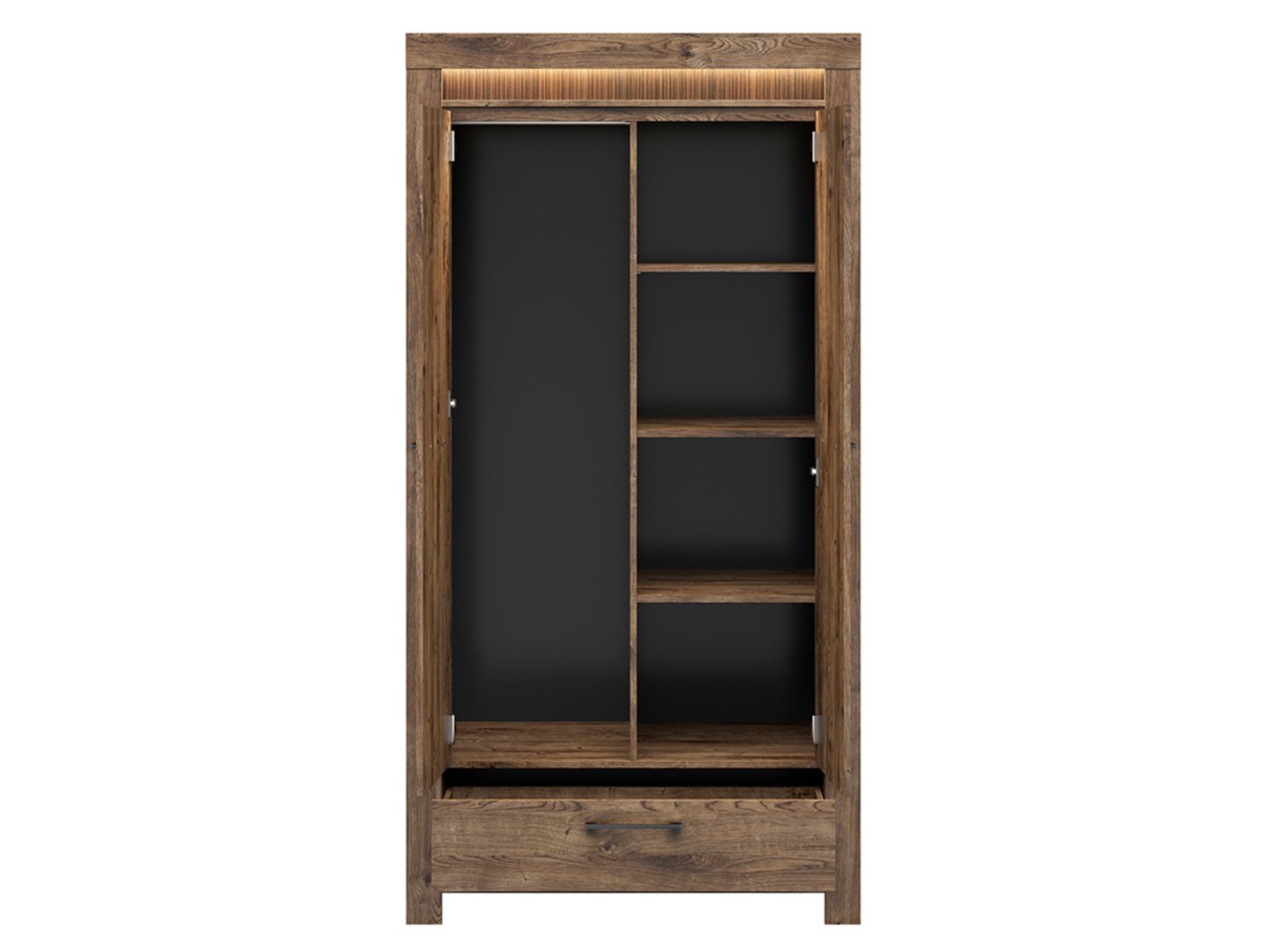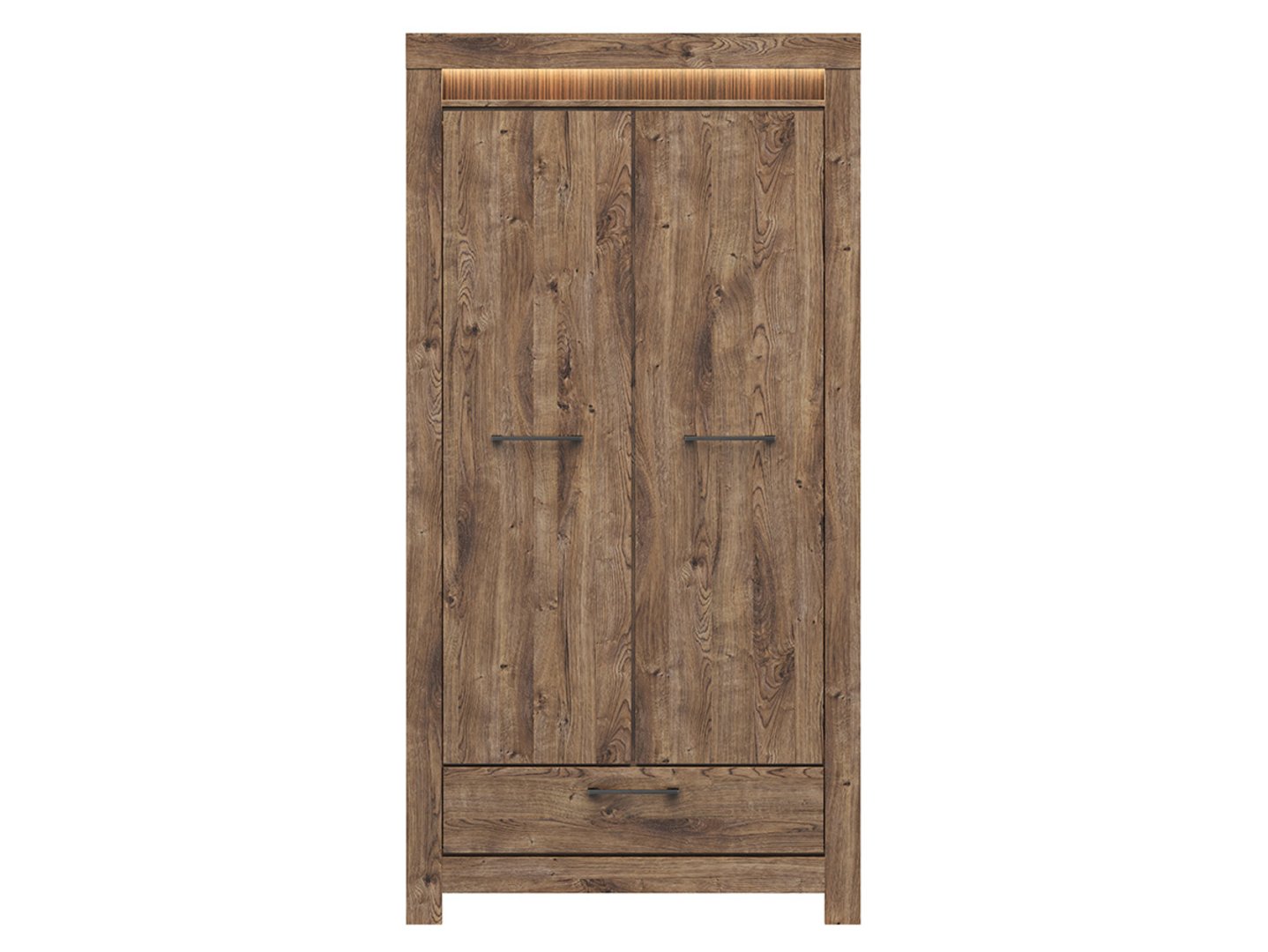 Шкаф Torin – стильная организация пространства в вашей гостиной. Если вы ищете уникальный дизайн для гостиной, мы настоятельно рекомендуем коллекцию Torin. Отличительной чертой этой массивной линии мебели являются массивные боковые панели, которые органично впишутся в любой интерьер. Кроме того, металлические ручки, подсветка под столешницей и дизайнерские аксессуары делают шкаф Torin не только практичным, но и эстетически привлекательным. Двухдверный шкаф предлагает просторный органайзер, который облегчает хранение одежды или документов. Его практичное внутреннее пространство позволяет легко найти все необходимое и создать место для различных вещей. Внутри шкафа размером 102 x 200 см вы найдете: – секцию с вешалкой, идеально подходящую для хранения пальто, платьев и костюмов; – три практичные полки для джинсов, толстовок или документов; – широкий ящик для постельного белья или скатертей. Холодный коричневый дуб Ribbeck идеально передает естественную красоту текстуры древесины. Характерными чертами массивного стиля являются утолщенные боковые панели и металлические ручки, а также эффектная рифленая полоса цвета «волшебный дуб Venge». Качественное освещение обеспечивается энергоэффективными светодиодными светильниками. Ящики и фасады плавно закрываются благодаря механизмам плавного закрывания и металлическим ручкам. Шкаф Torin отлично смотрится сам по себе, но по-настоящему раскрывает свой характер в сочетании с другими элементами коллекции. Сочетайте их, чтобы создать эргономичное и стильное пространство в вашей гостиной.