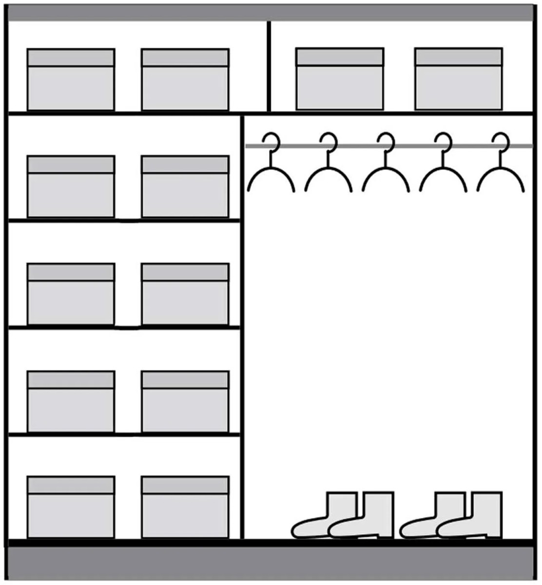 Раздвижной шкаф Avantgarde AV5 с зеркалом – имеет полки с одной стороны, штангу для одежды с другой и зеркало спереди.