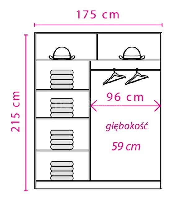 Раздвижной шкаф Sonoma Effect — это вместительный предмет мебели больших размеров, идеально подходящий для спальни, гостиной или прихожей. Его функциональная внутренняя планировка включает полки и штангу для вешалок.