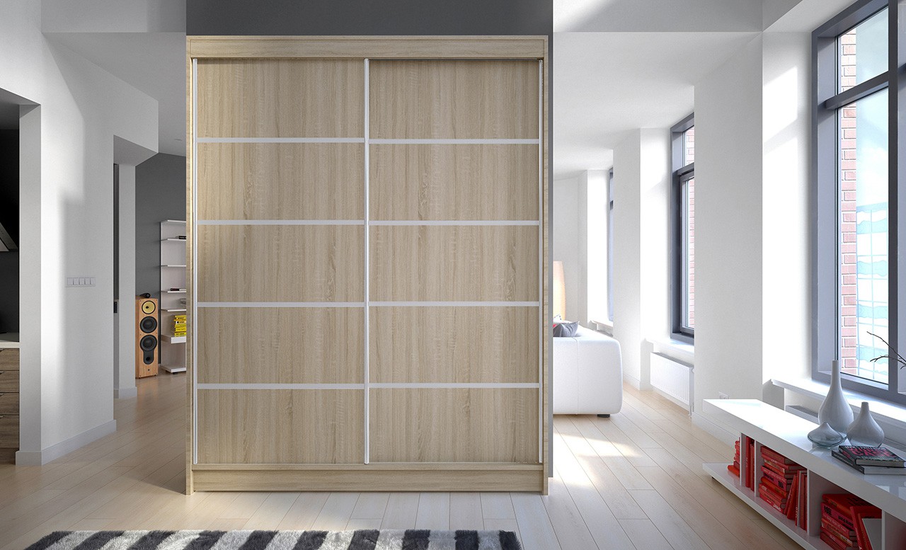 Раздвижной шкаф LUFT — идеальное решение для организации пространства. Он оснащен просторными полками и штангой для вешалок, на которых можно хранить платья, костюмы, верхнюю одежду и рубашки. Фасад украшен характерными серебристыми горизонтальными полосами, придающими изделию неповторимый стиль. Благодаря раздвижной конструкции вам не нужно создавать дополнительное пространство для открытия дверей, что делает его идеальным решением для небольшой комнаты или узкого коридора.