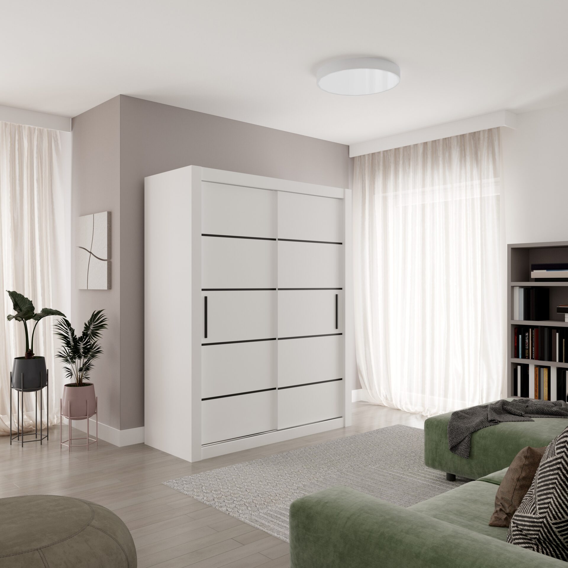 Раздвижной шкаф MORELL — идеальное решение для организации пространства. Он оснащен просторными полками и штангой для вешалок, на которых можно хранить платья, костюмы, верхнюю одежду и рубашки. Благодаря раздвижной конструкции вам не нужно создавать дополнительное пространство для открытия дверей, что делает его идеальным решением для небольшой комнаты или узкого коридора.